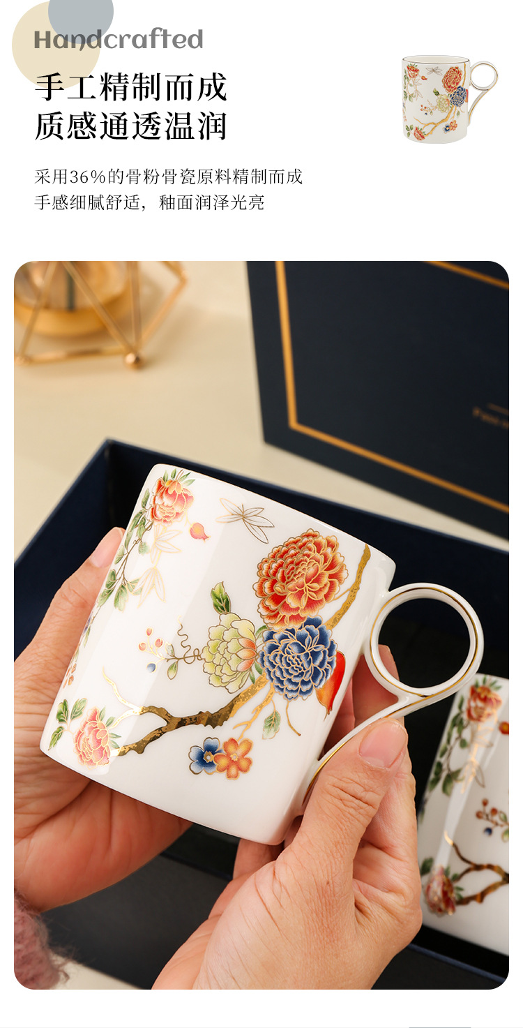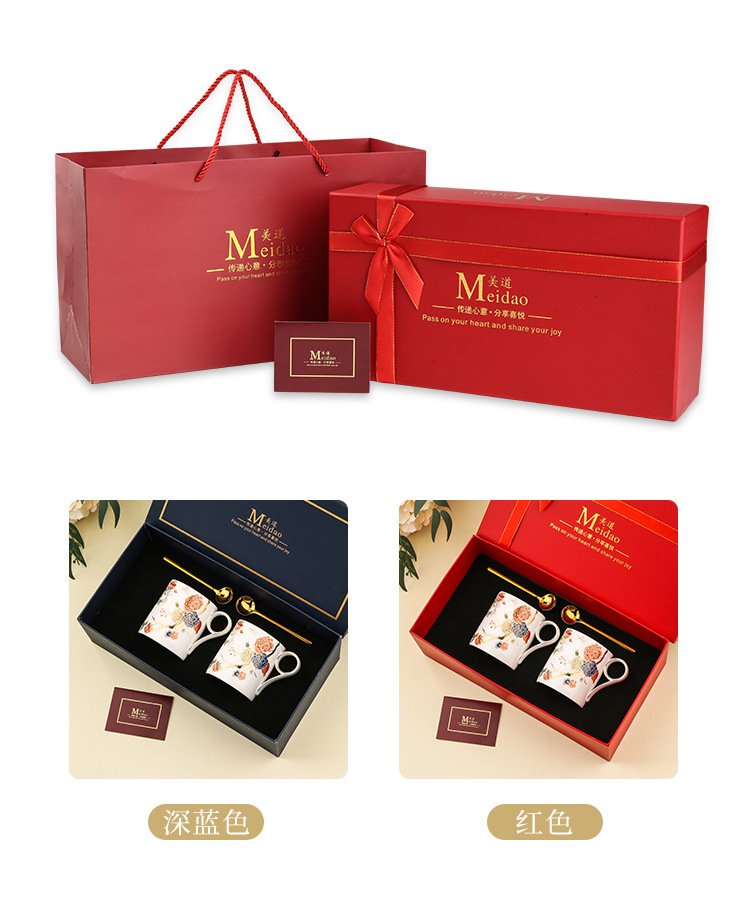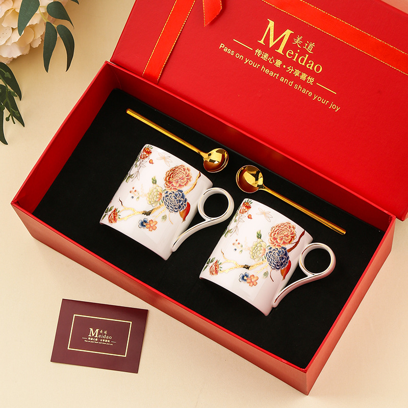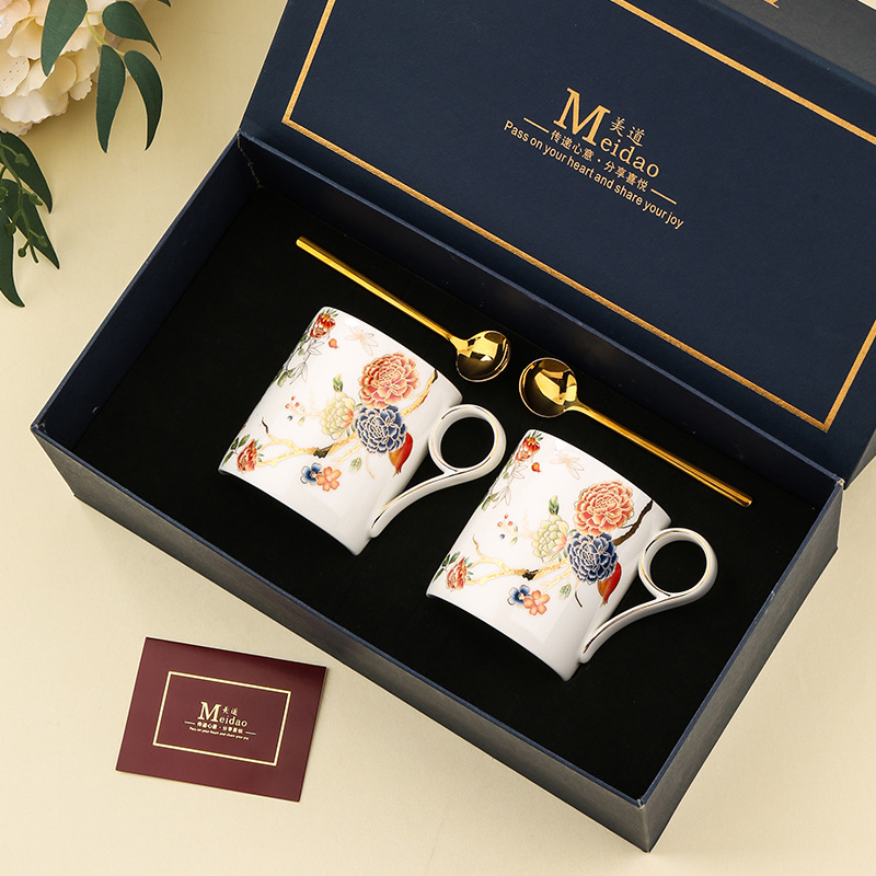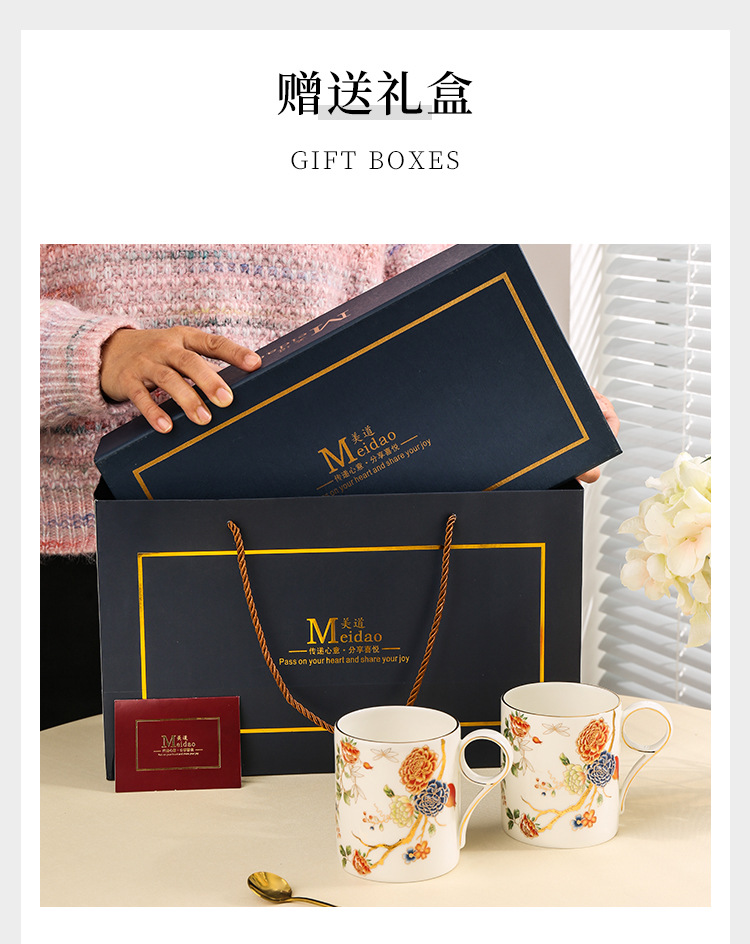 美道 石榴家园 马克杯骨瓷水杯生日礼物礼盒情侣杯子一对伴手礼