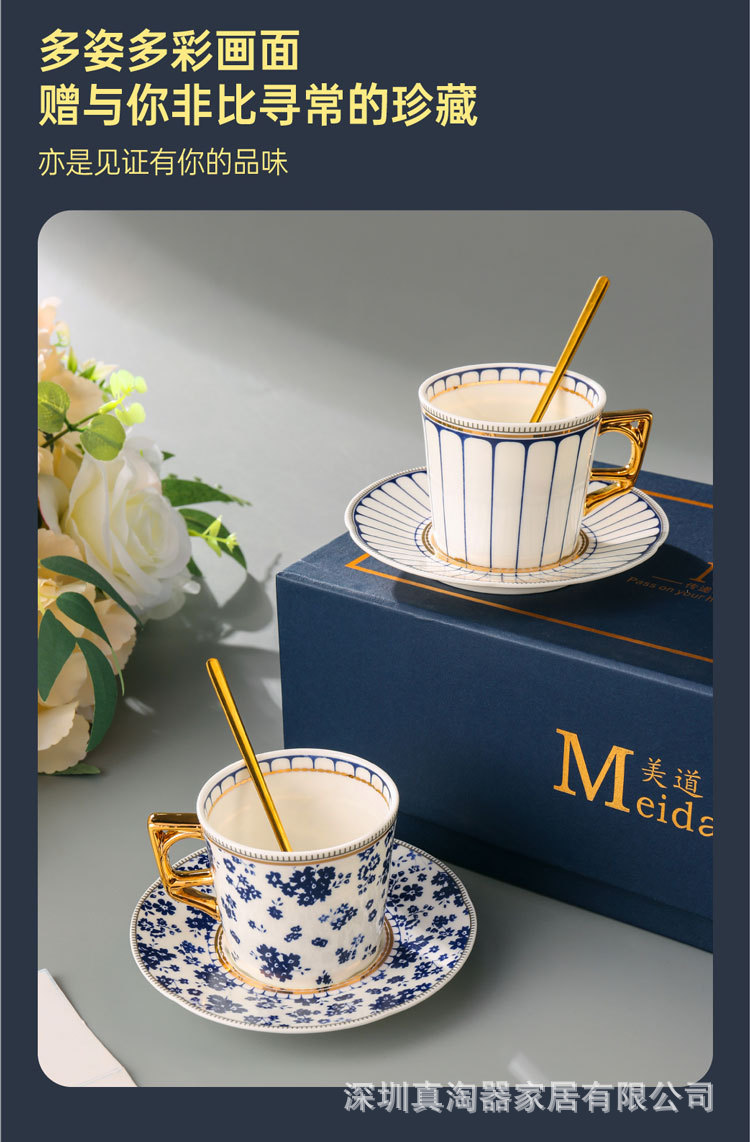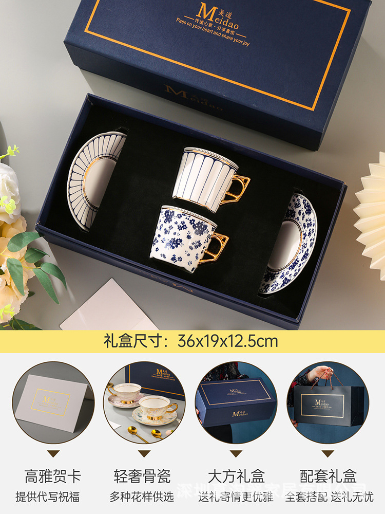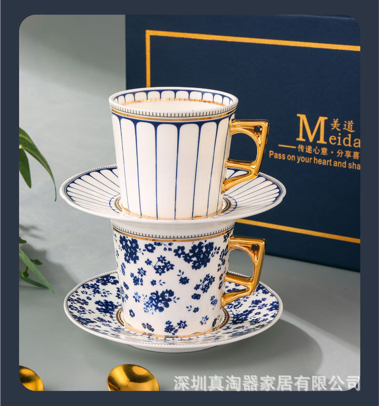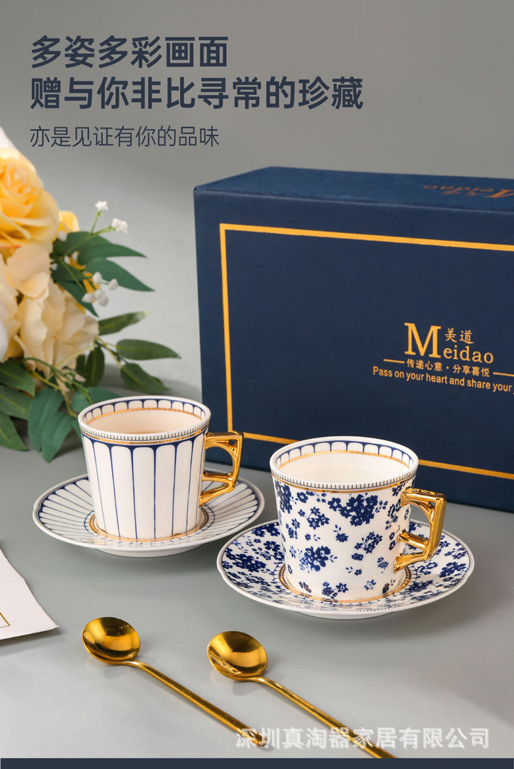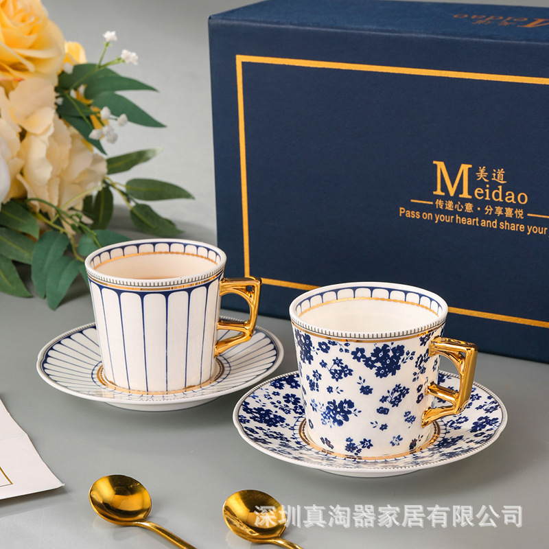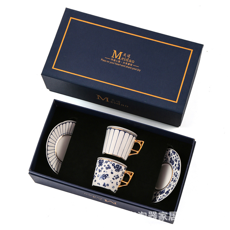 美道 碎花条纹 咖啡杯子高档精致情侣对杯套装生日送礼结婚伴手礼