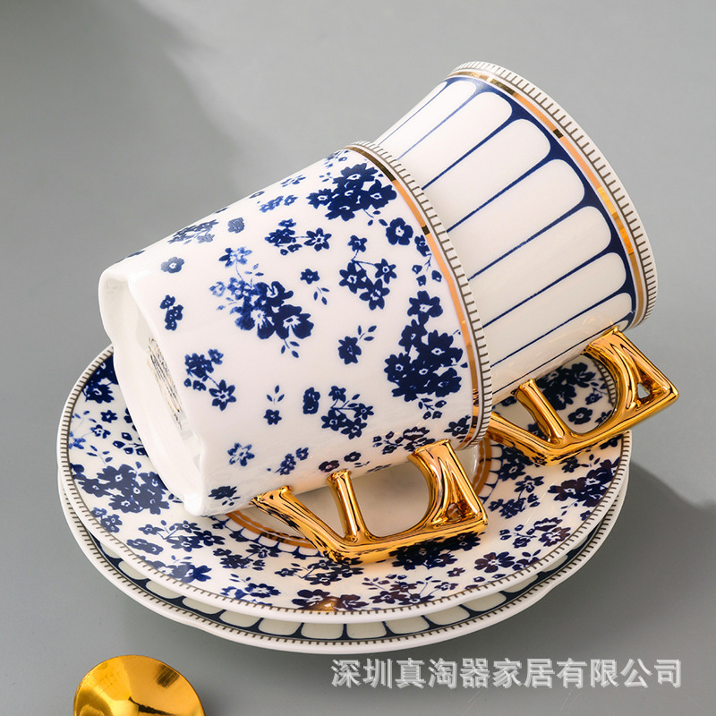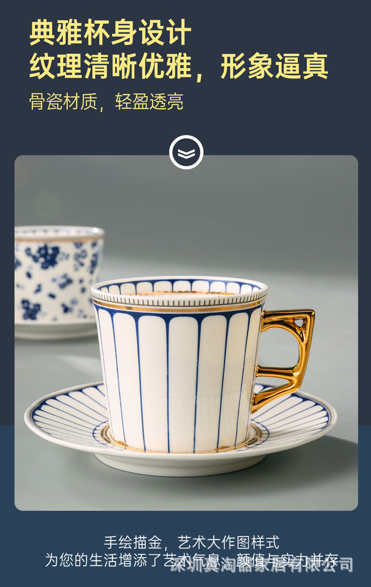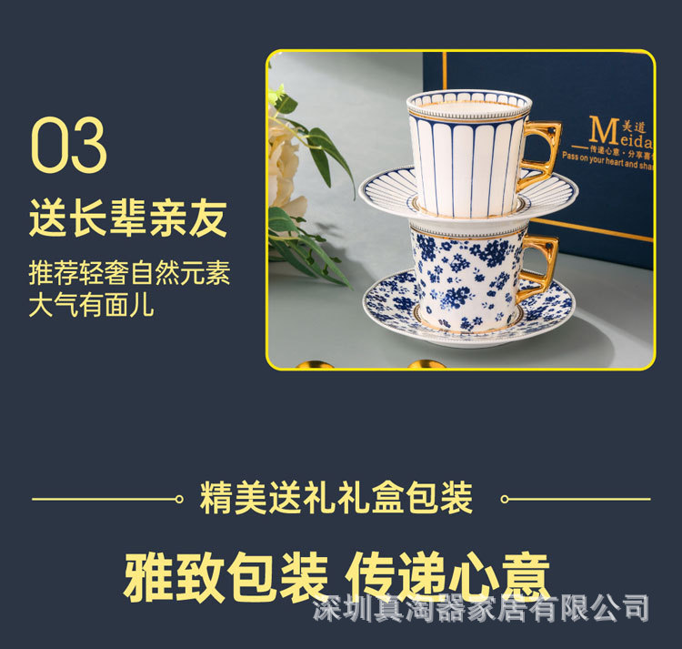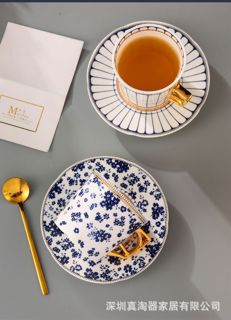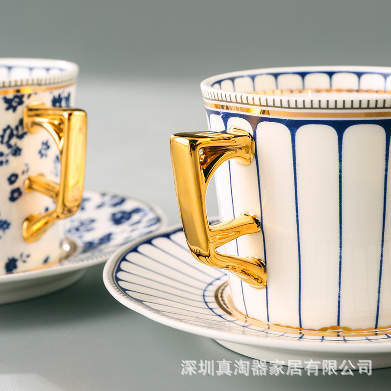 美道 碎花条纹 咖啡杯子高档精致情侣对杯套装生日送礼结婚伴手礼