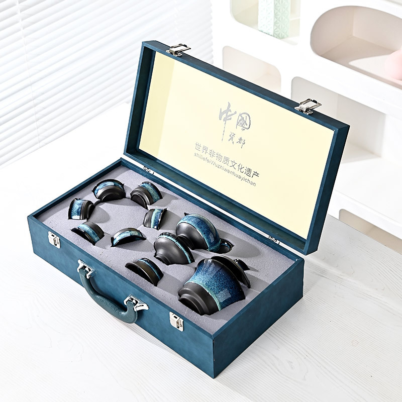 10头窑变拉丝茶具套装全套陶瓷功夫礼盒装礼品高档伴手礼定制logo 投诉