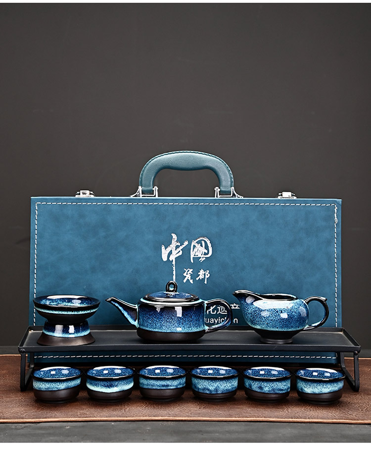 10头窑变拉丝茶具套装全套陶瓷功夫礼盒装礼品高档伴手礼定制logo