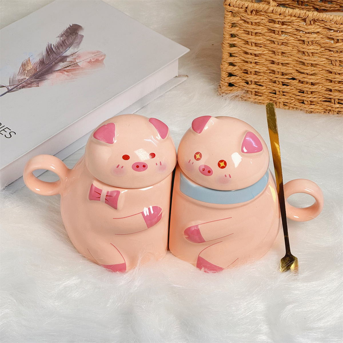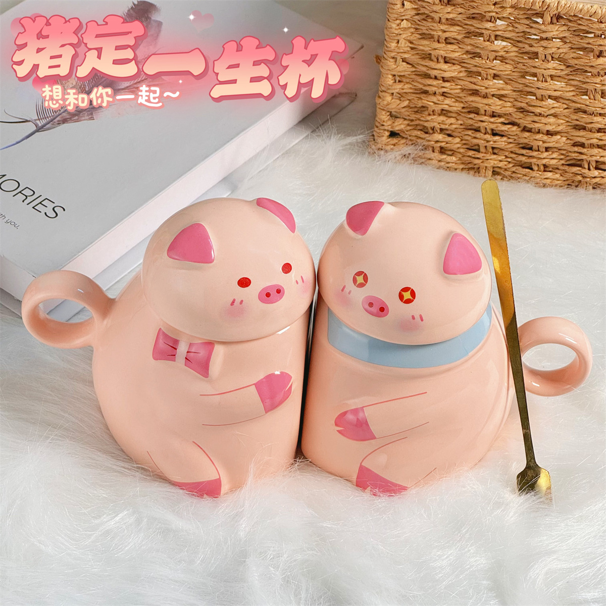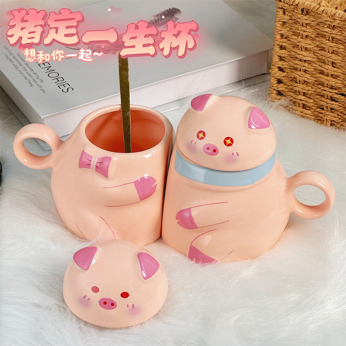 猪定一生高级感陶瓷马克杯带盖可爱猪猪杯子礼物情侣对杯家用水杯 投诉
