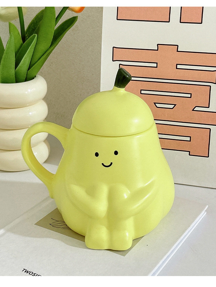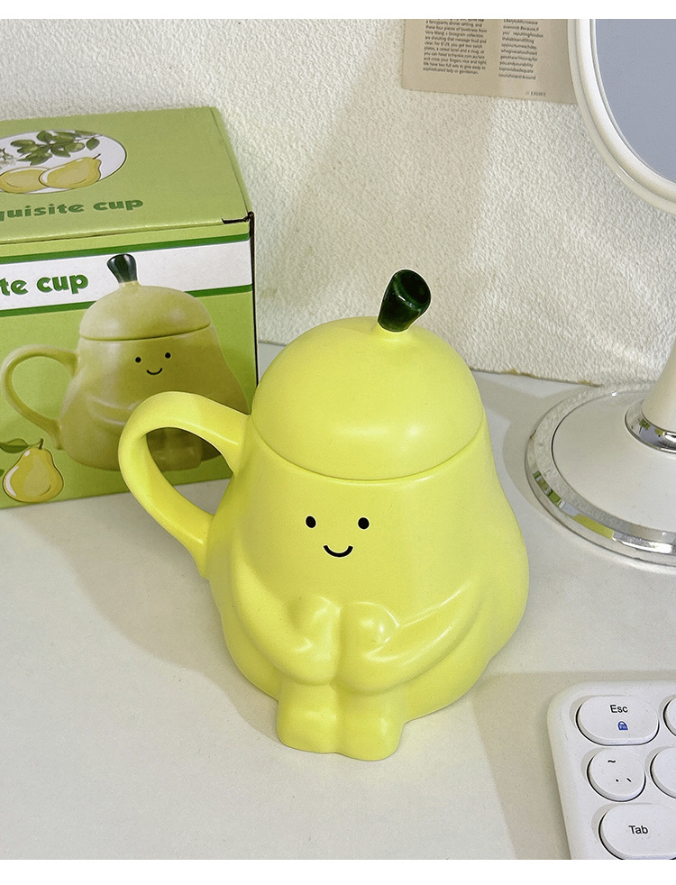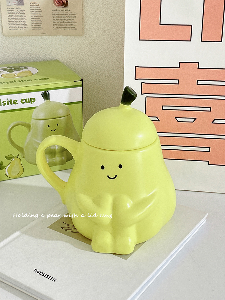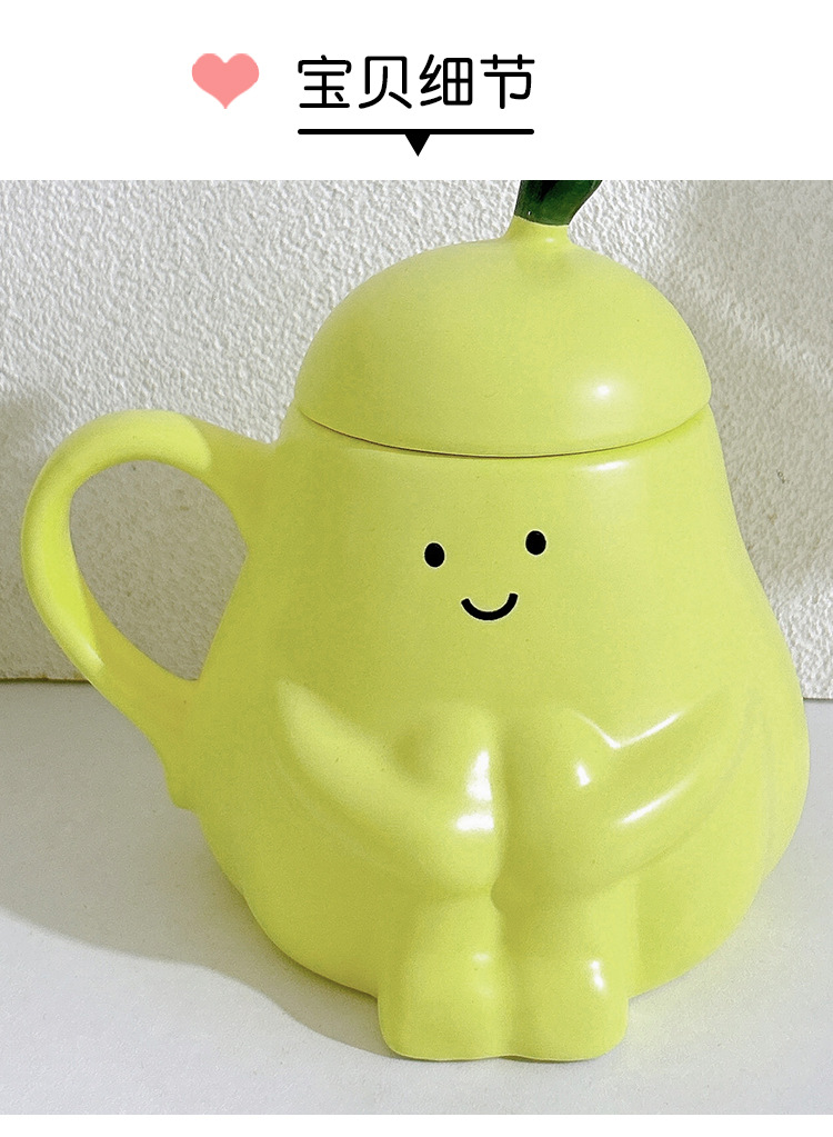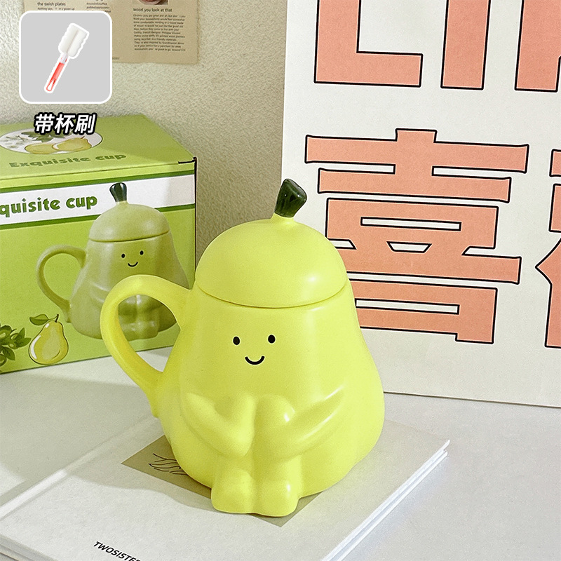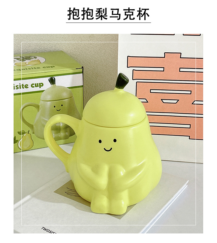 抱抱梨杯子陶瓷马克杯创意呆萌可爱少女心生日礼物水杯带盖礼品杯