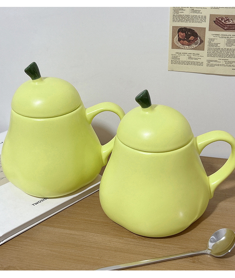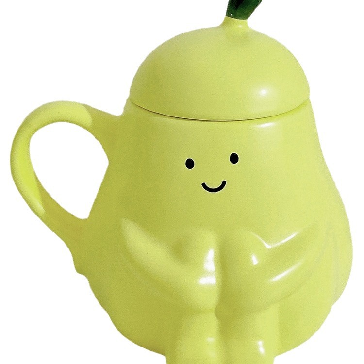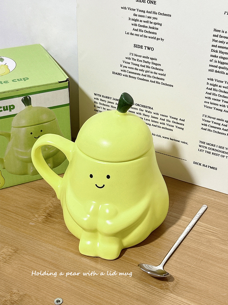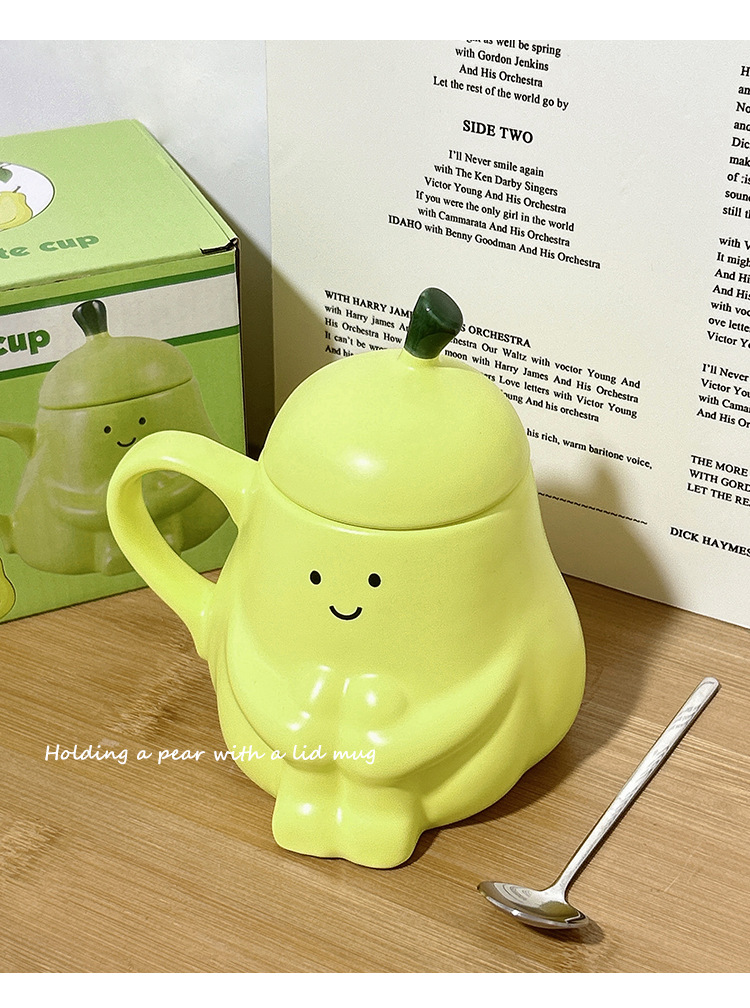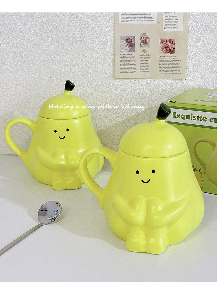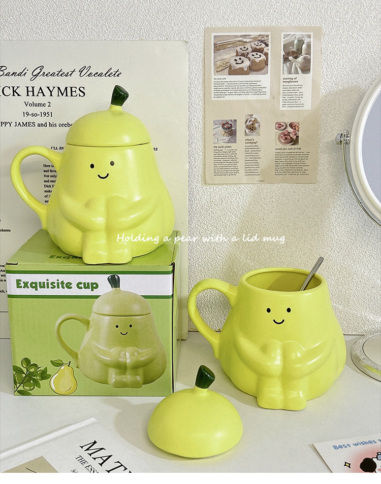 抱抱梨杯子陶瓷马克杯创意呆萌可爱少女心生日礼物水杯带盖礼品杯