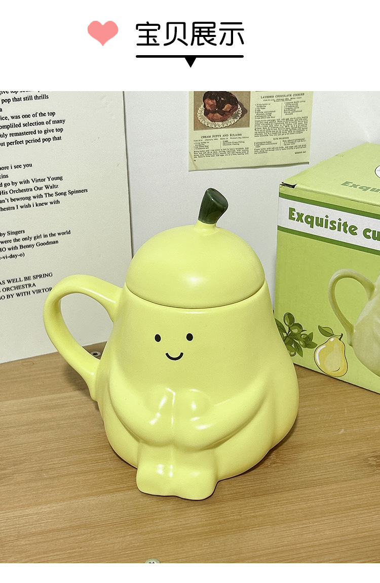 抱抱梨杯子陶瓷马克杯创意呆萌可爱少女心生日礼物水杯带盖礼品杯 投诉