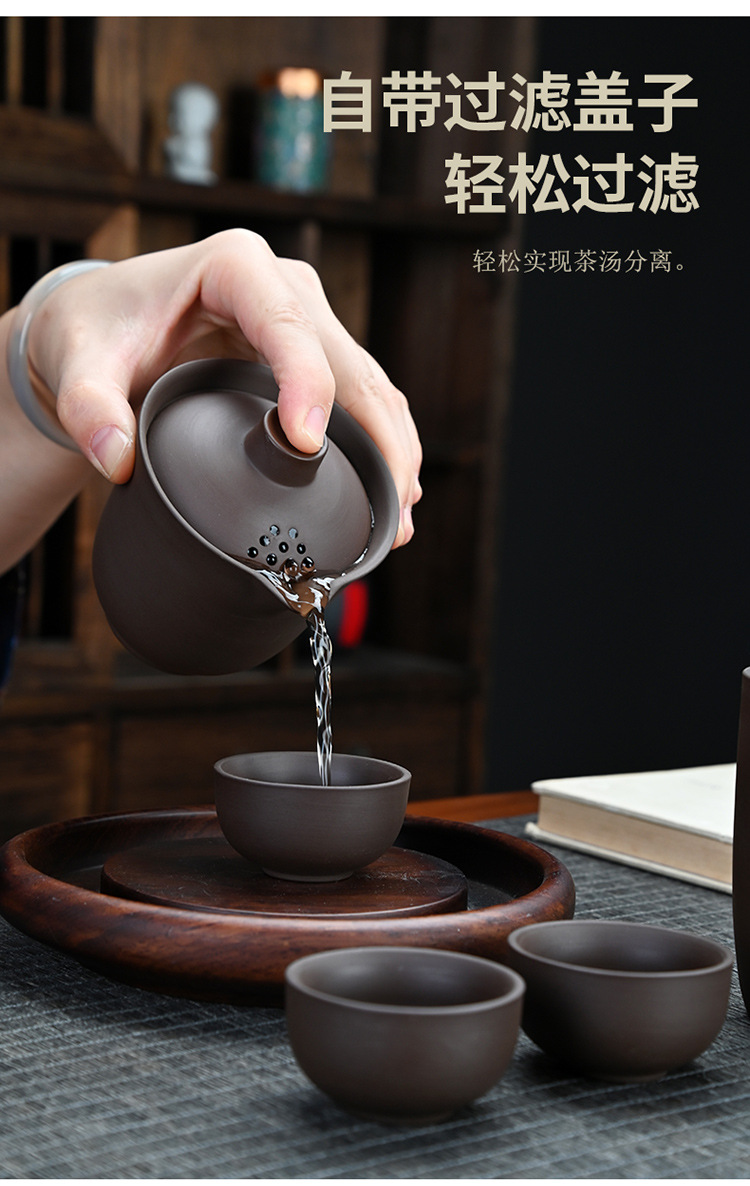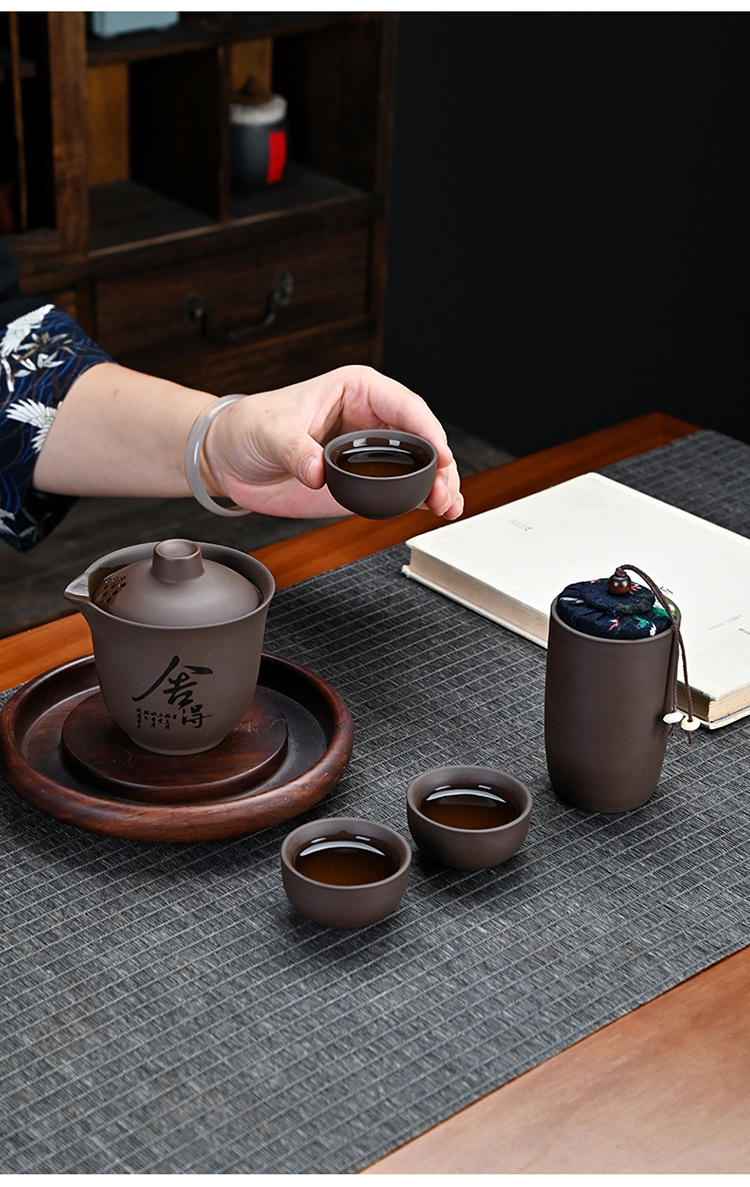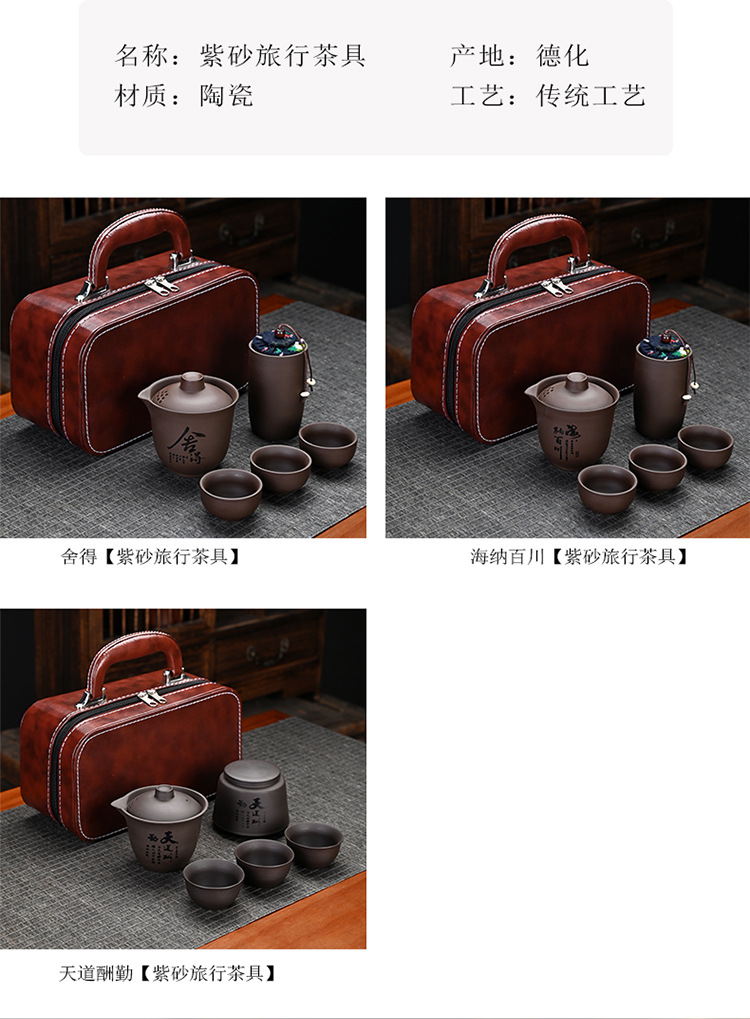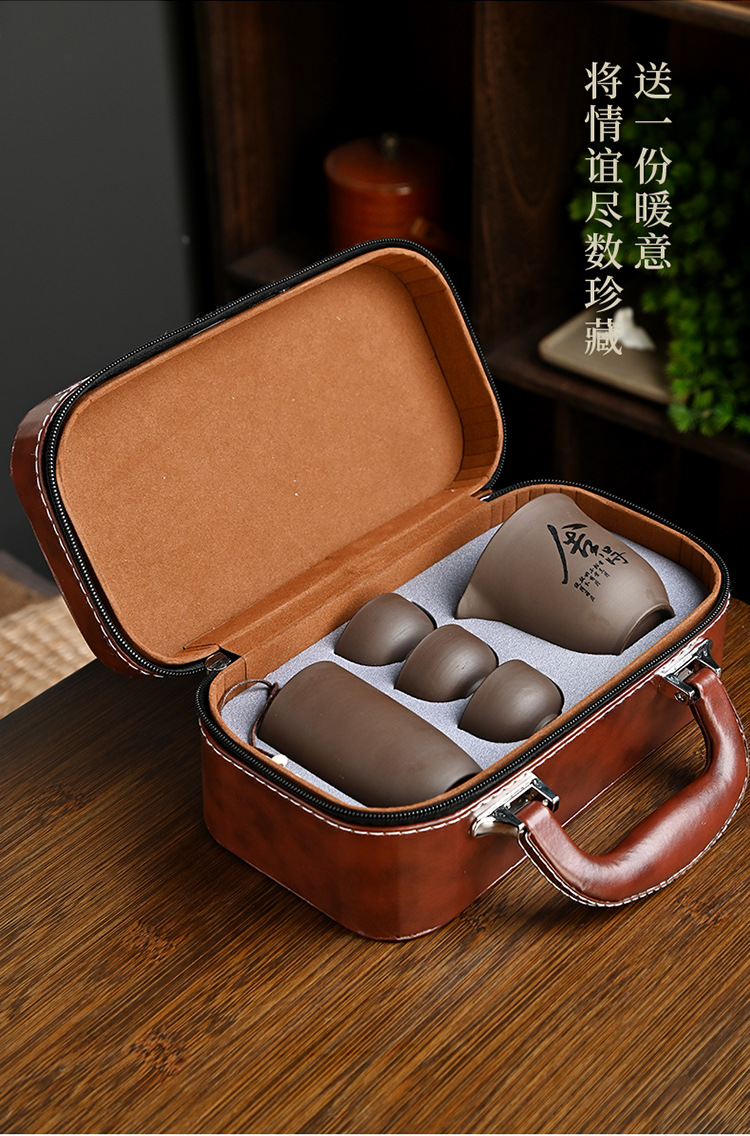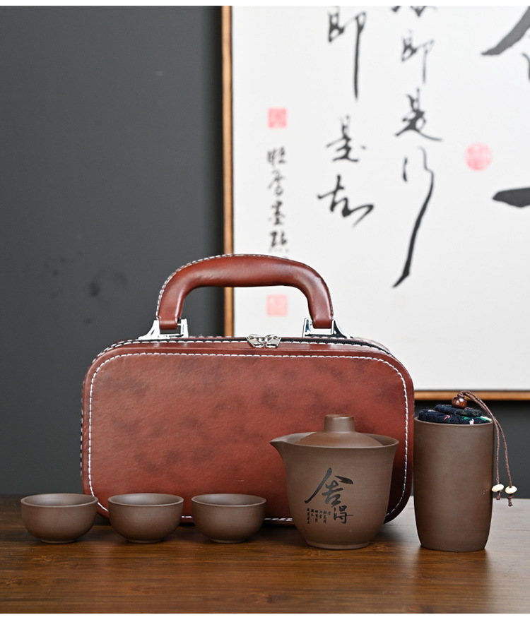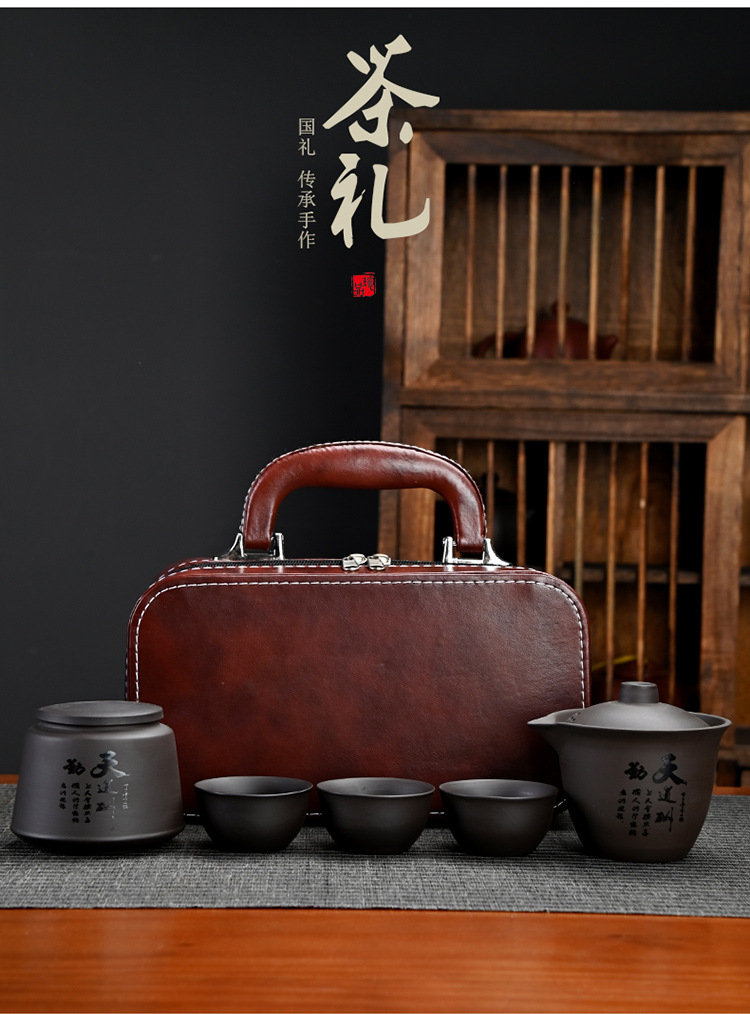 紫砂旅行茶具户外套装皮包一壶三杯茶叶罐整套陶瓷礼品伴手礼定制