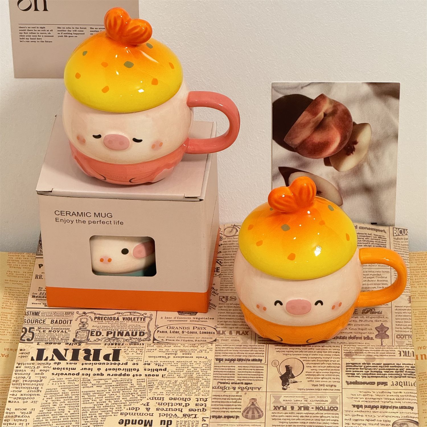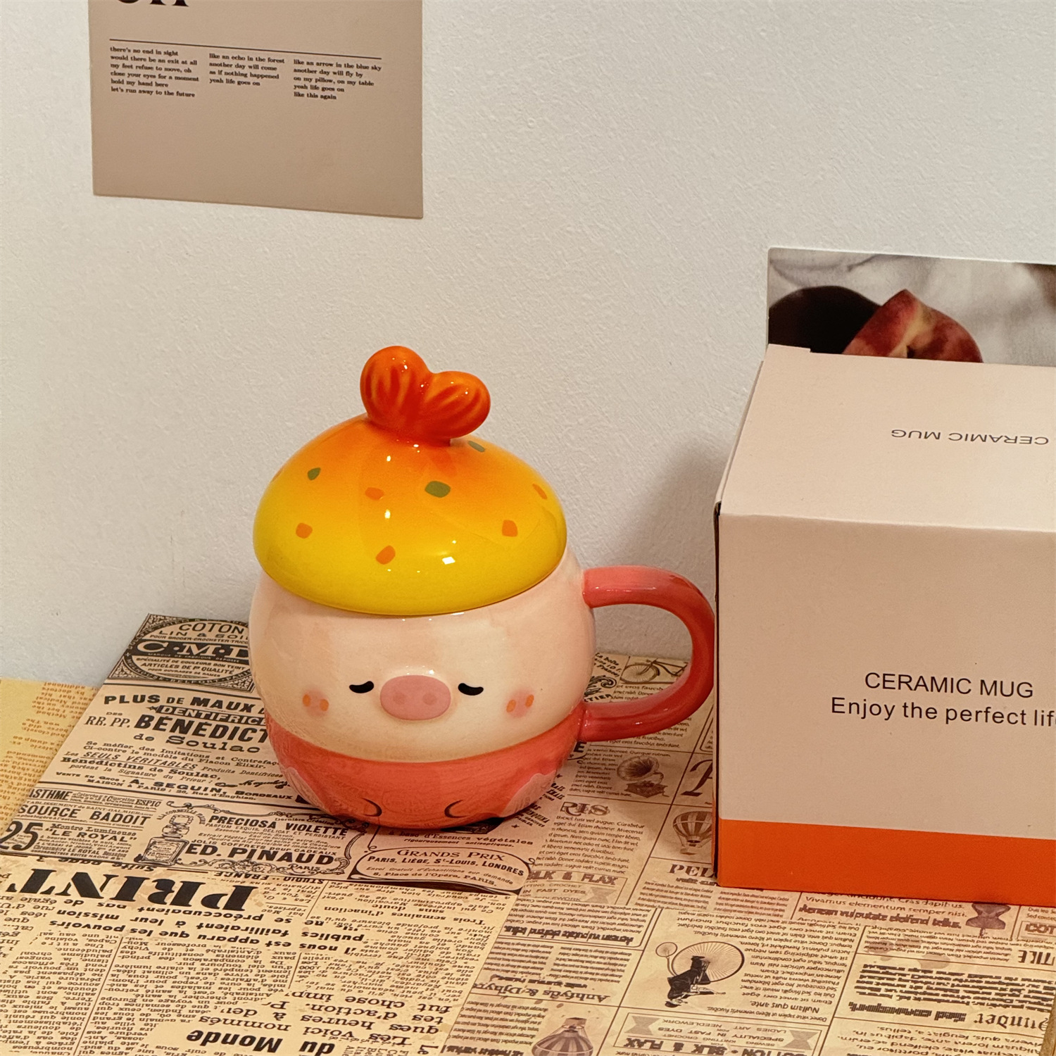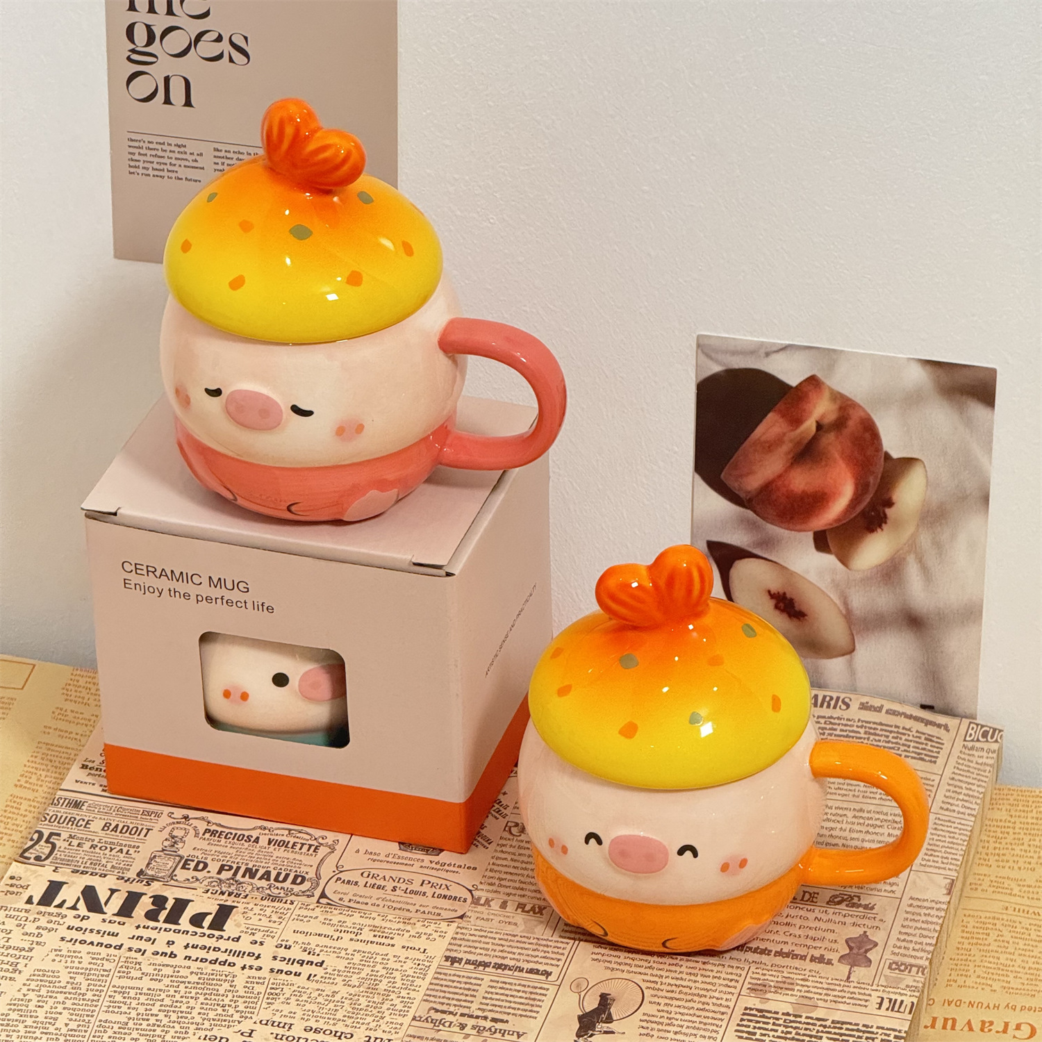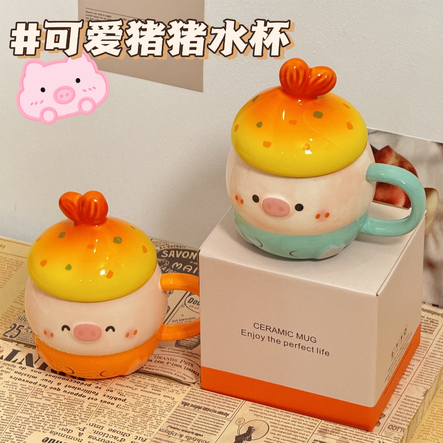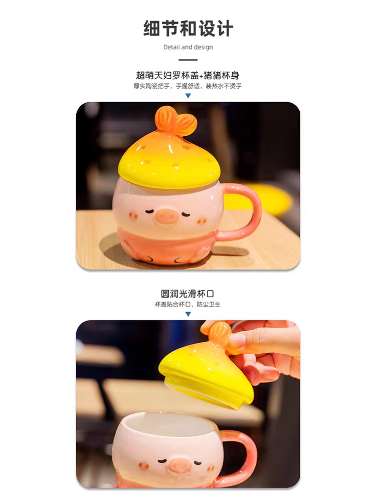 可爱猪猪水杯陶瓷杯子马克杯送情侣闺蜜生日礼物女生带盖小众女孩