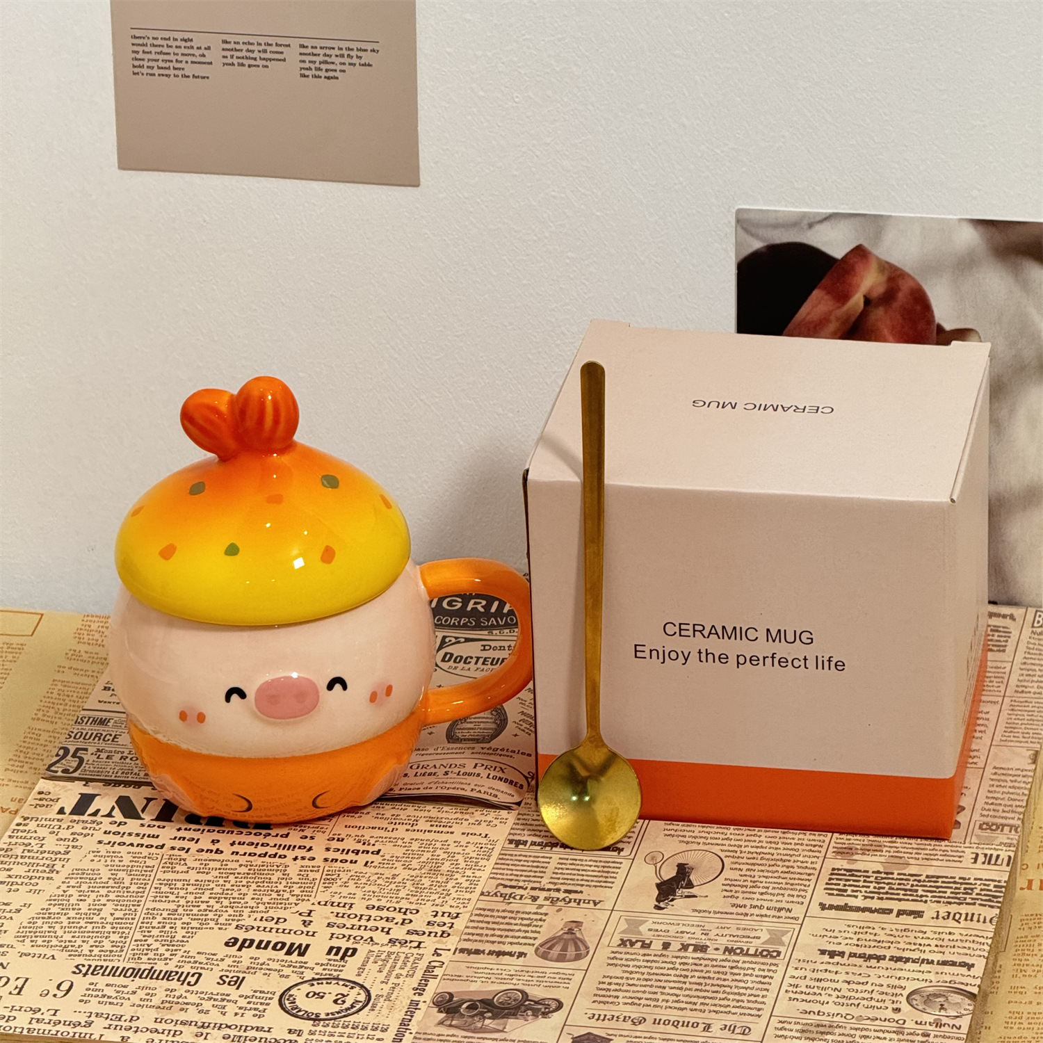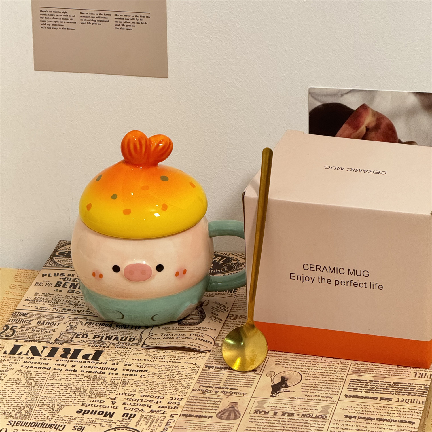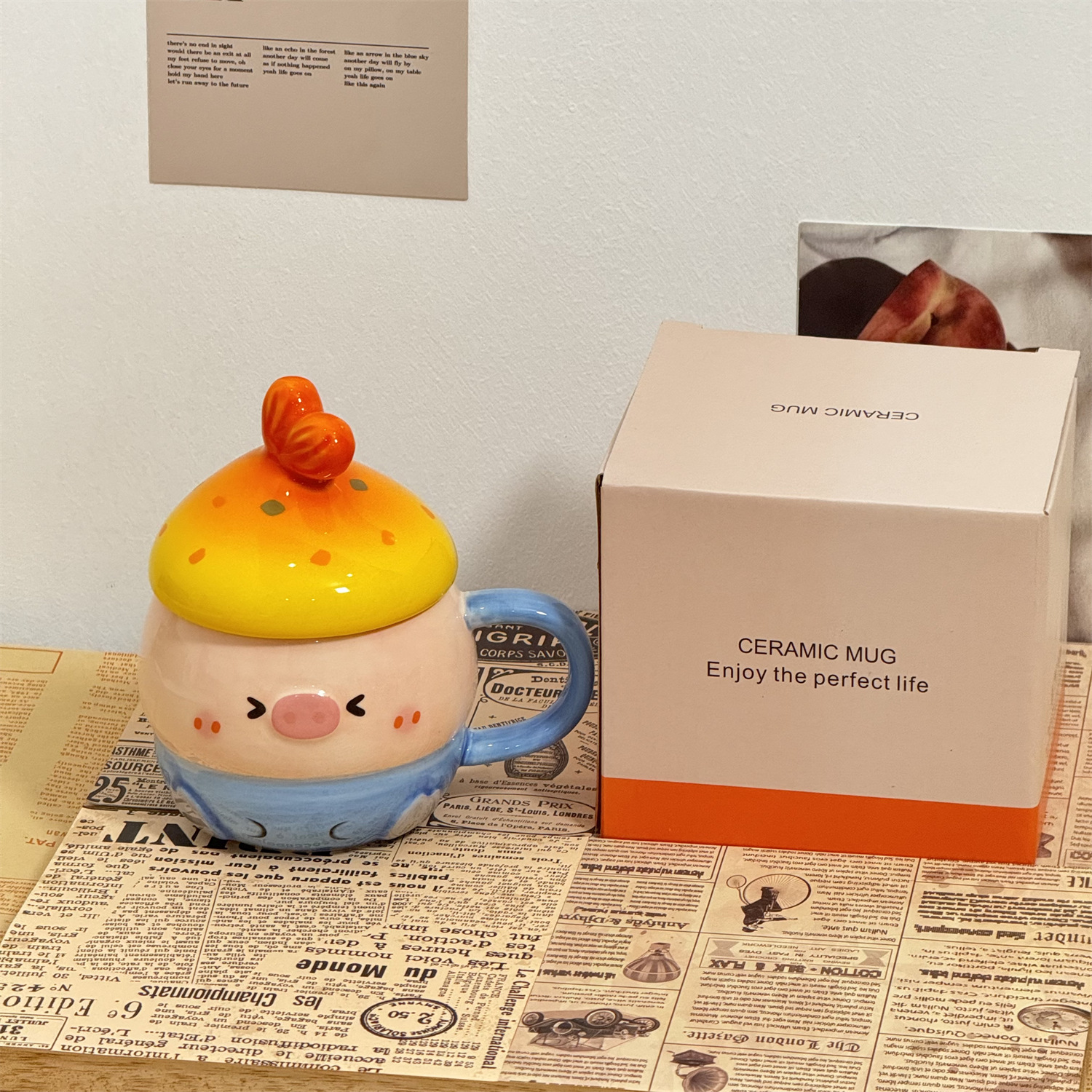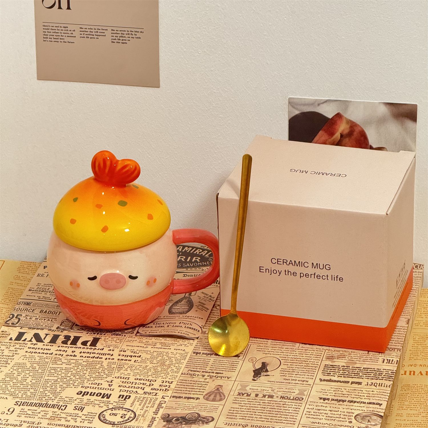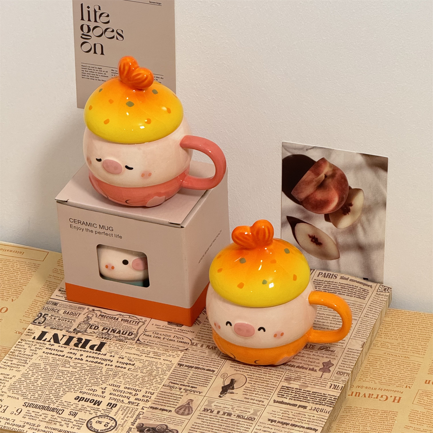 可爱猪猪水杯陶瓷杯子马克杯送情侣闺蜜生日礼物女生带盖小众女孩