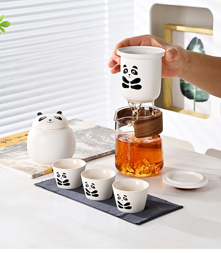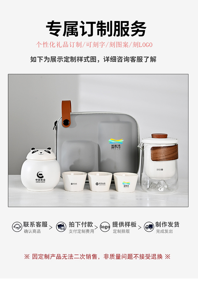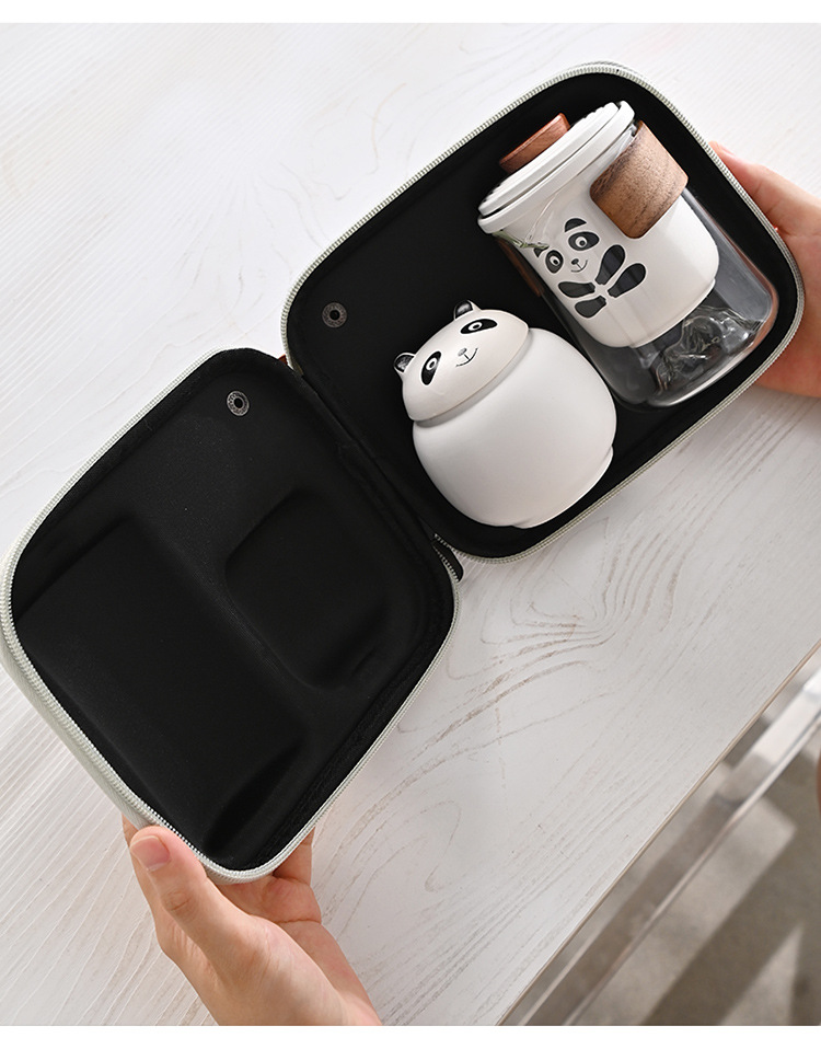 熊猫旅行茶具便携式快客杯户外收纳露营可爱一壶三杯随身泡茶定制