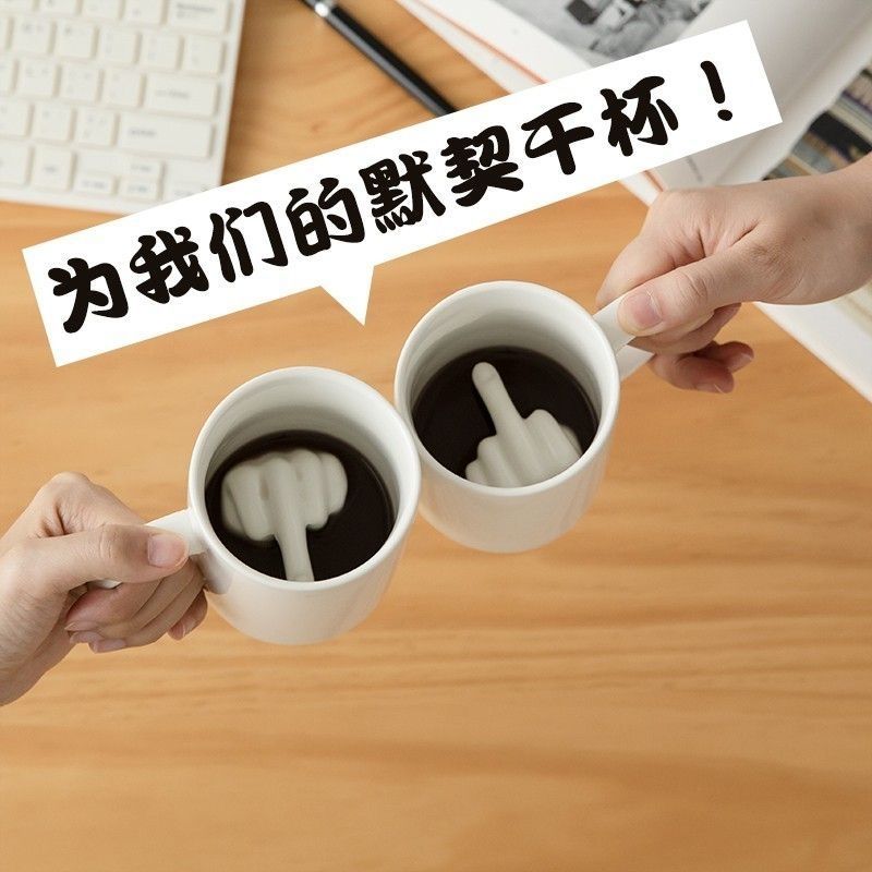 单品--搞笑中指陶瓷杯子ins简约个性造型马克杯生日礼物搞怪水杯