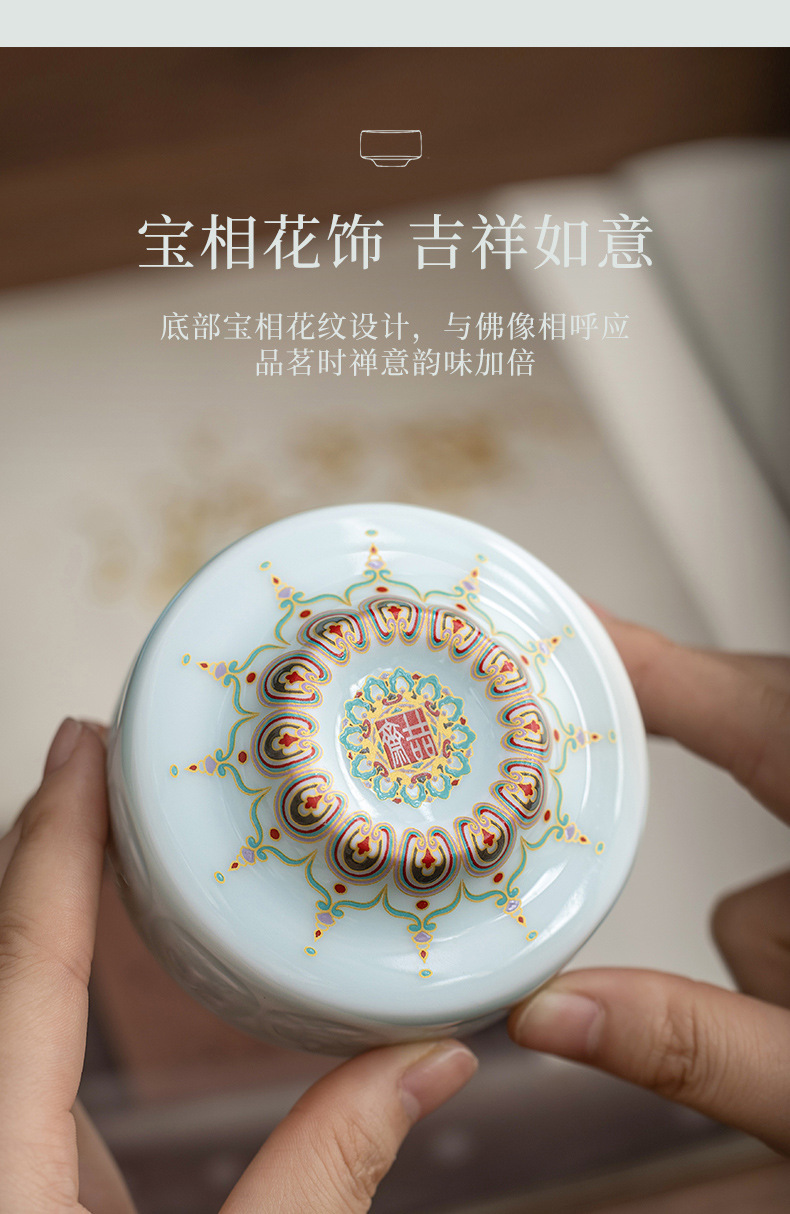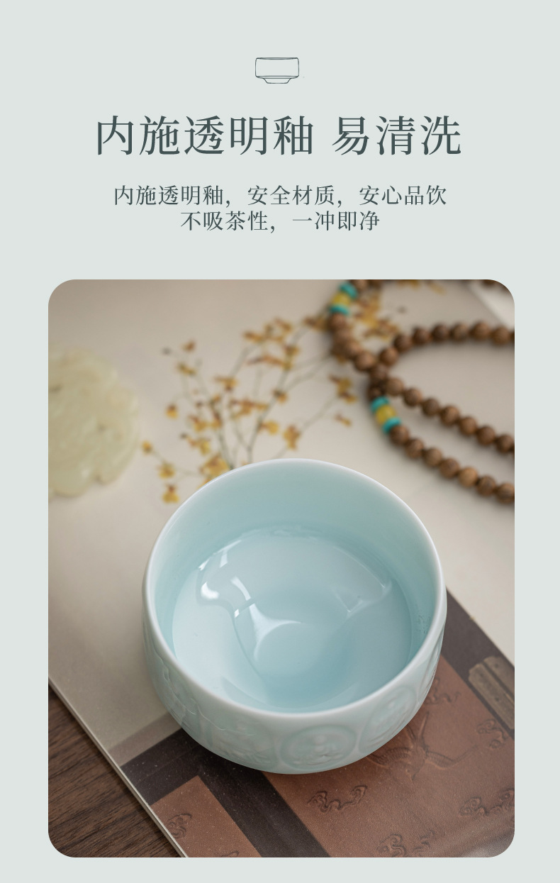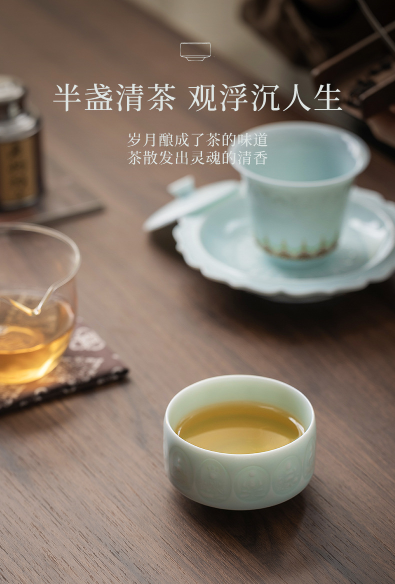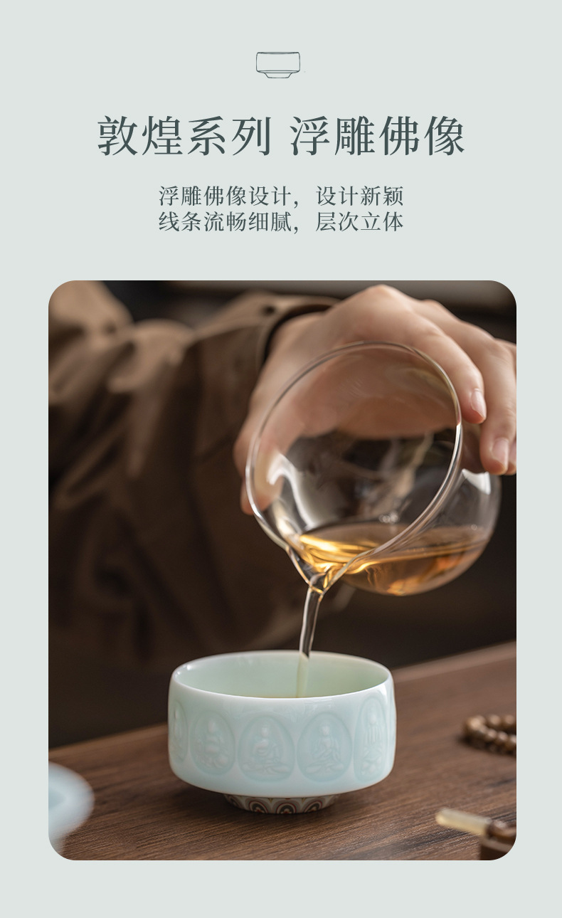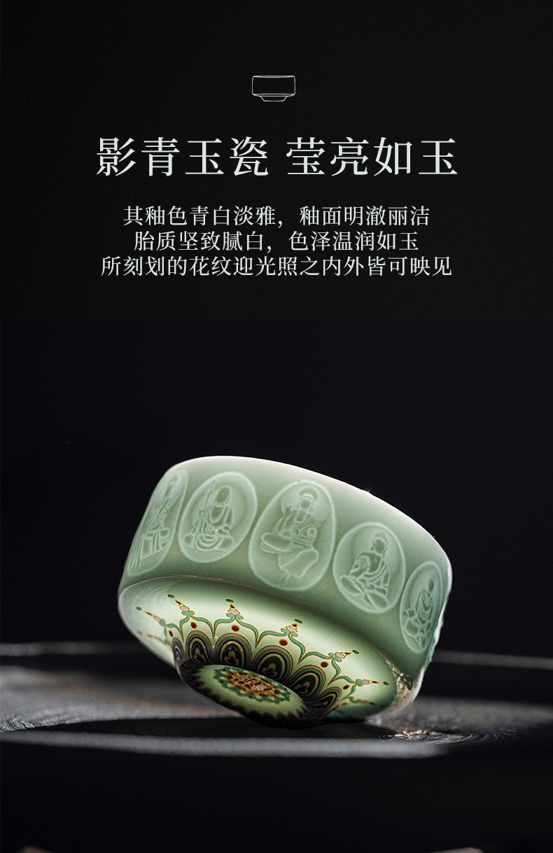 影青浮雕敦煌佛像主人杯陶瓷功夫茶具品茗杯个人专用杯高档礼盒装
