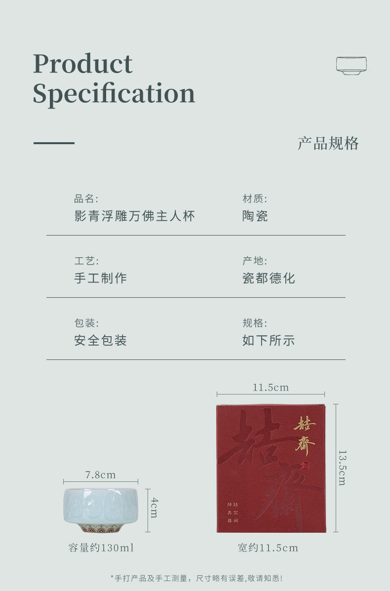 影青浮雕敦煌佛像主人杯陶瓷功夫茶具品茗杯个人专用杯高档礼盒装 投诉
