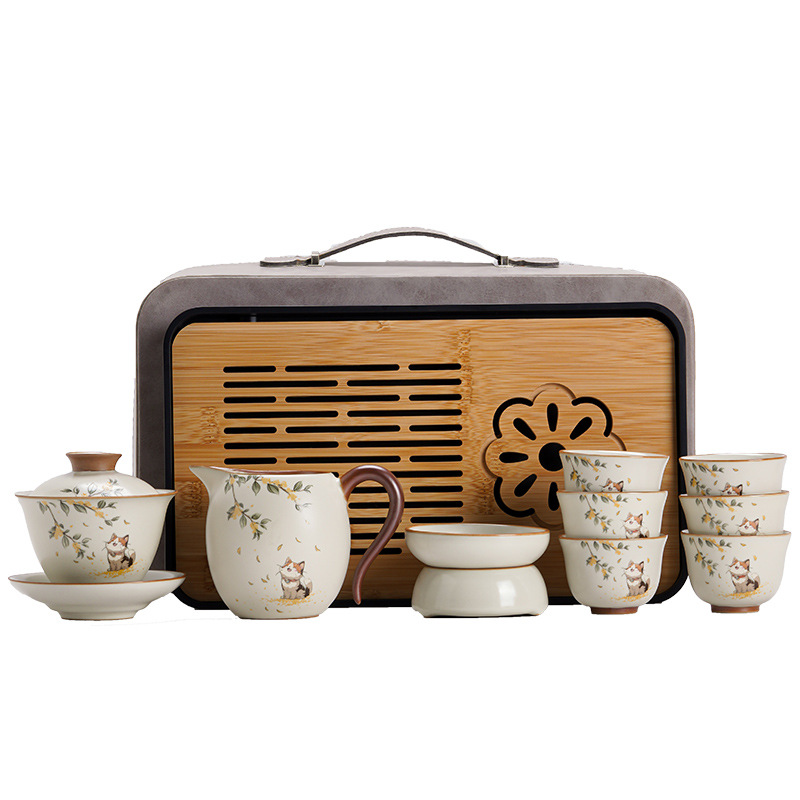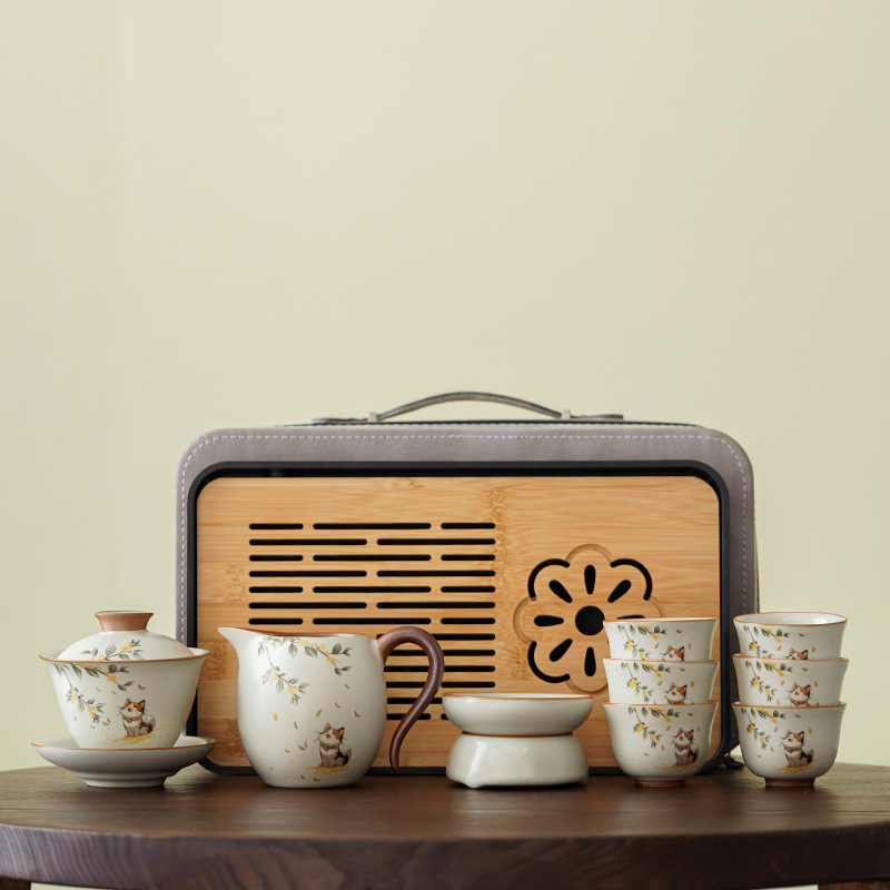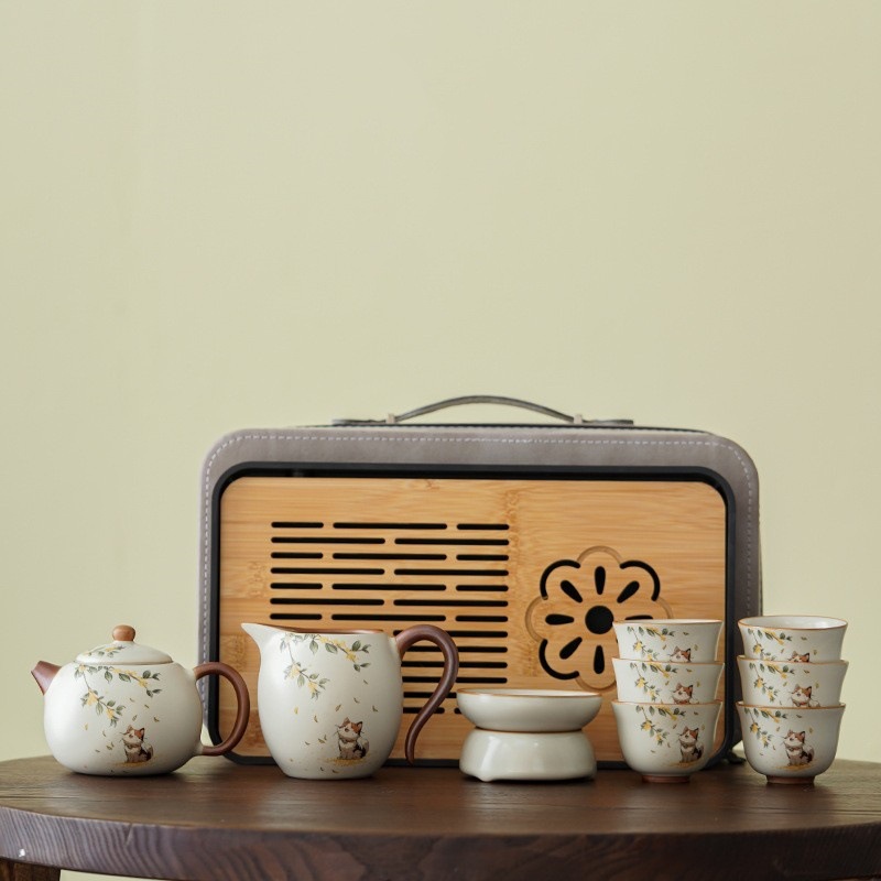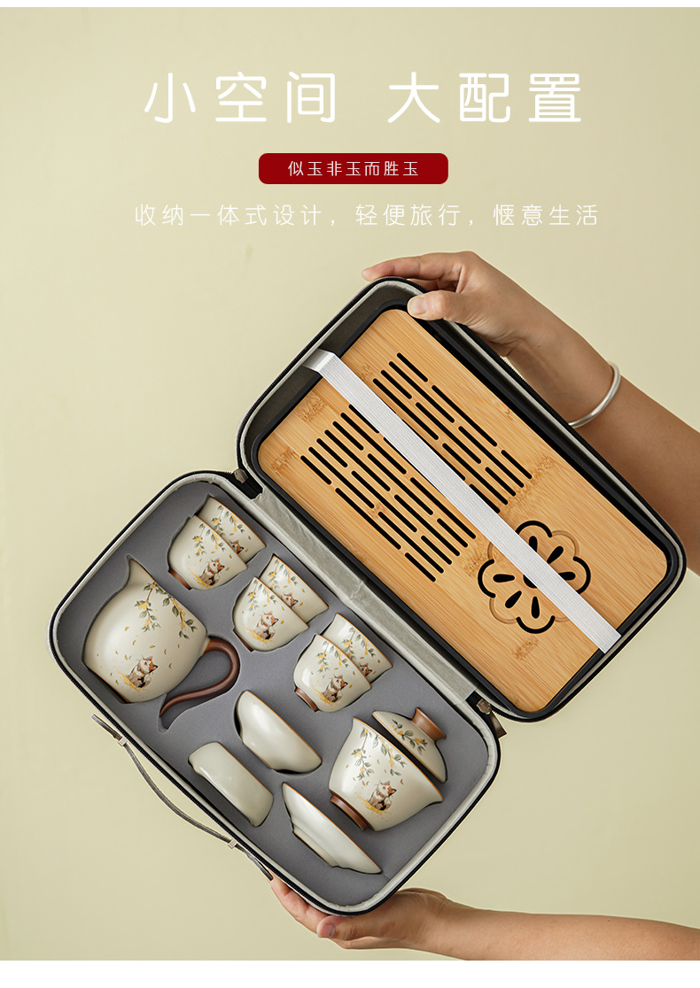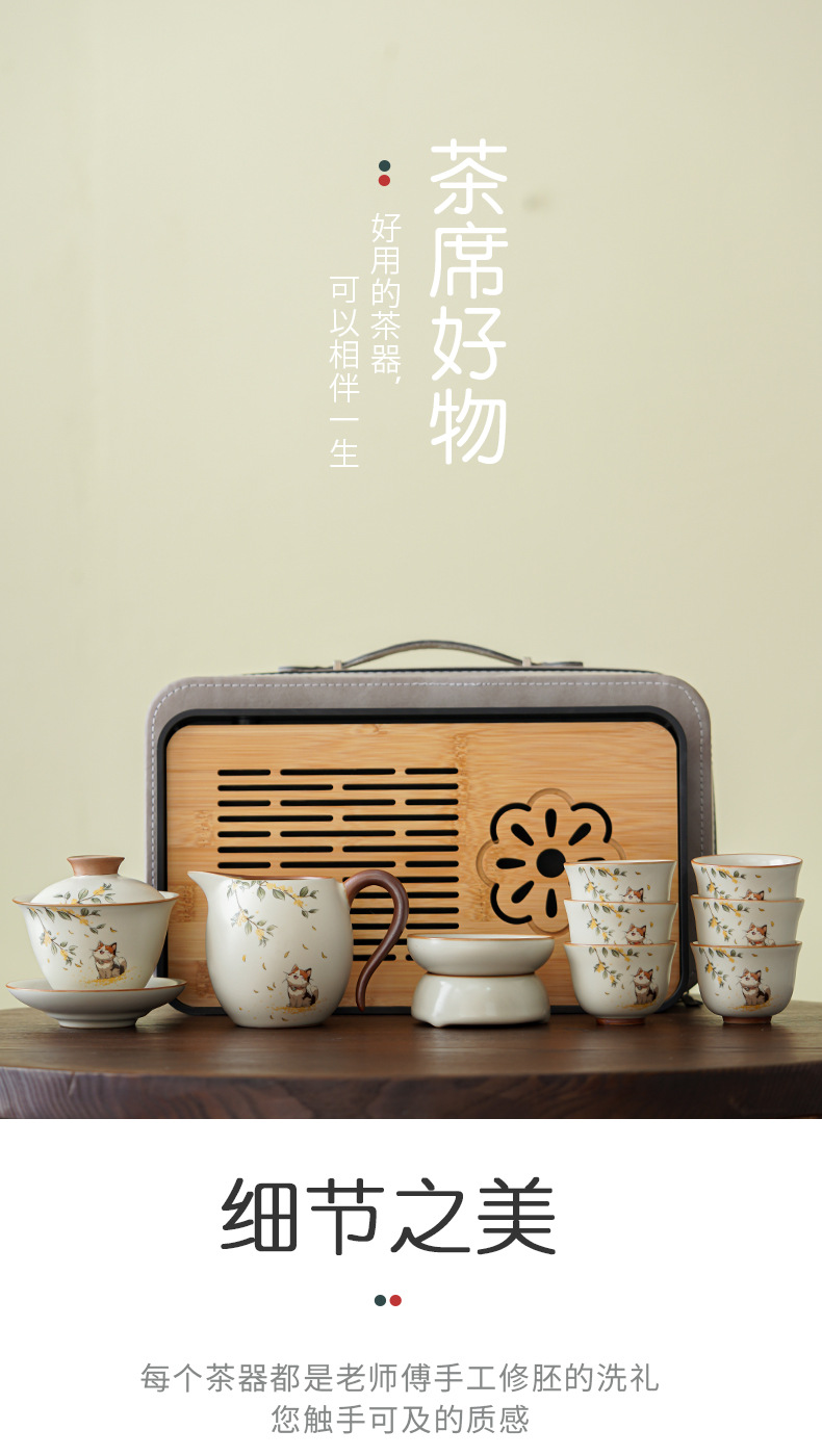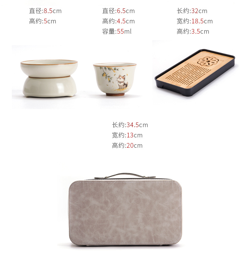汝窑旅行功夫茶具小套装户外便携式收纳包陶瓷茶壶盖碗喝茶杯茶盘 投诉