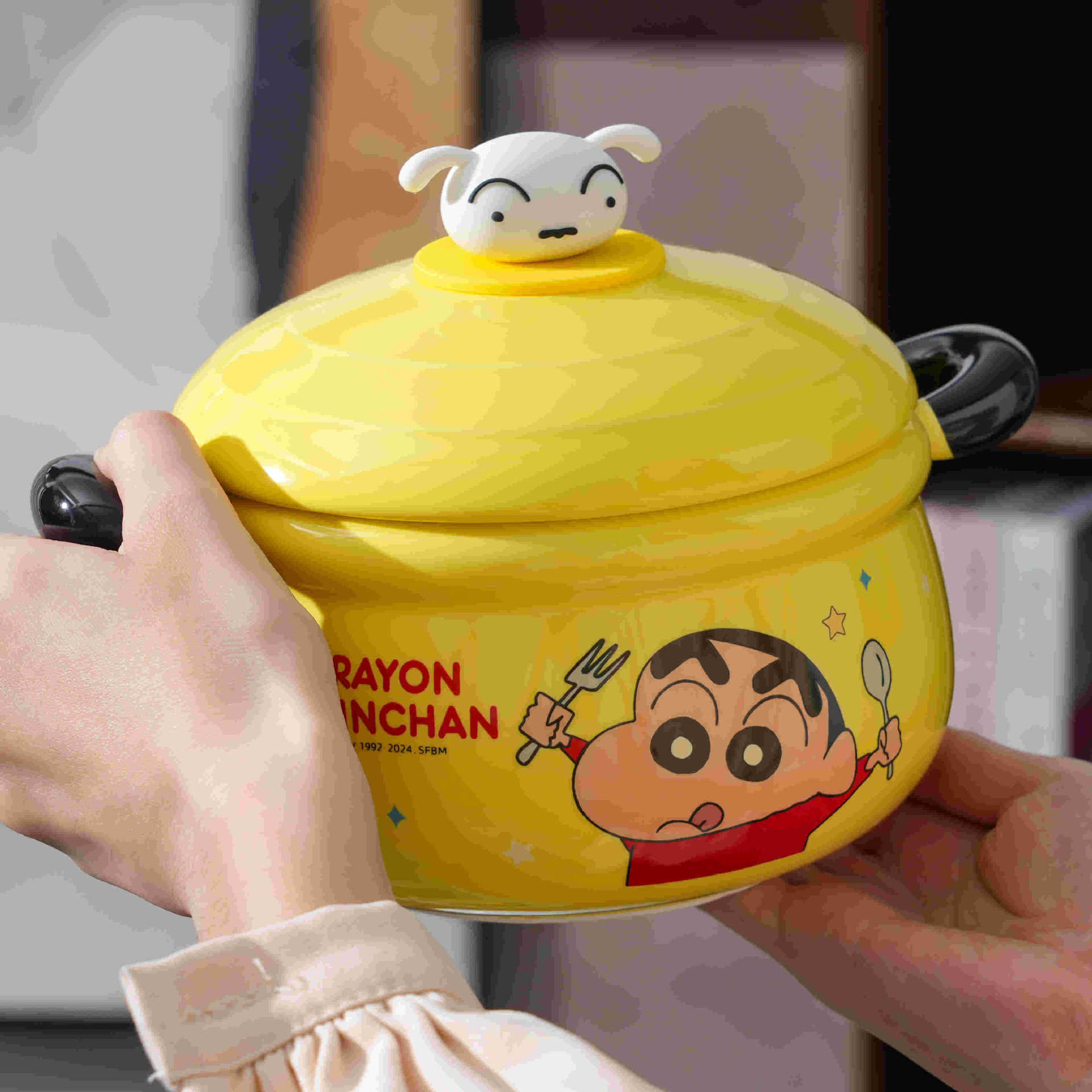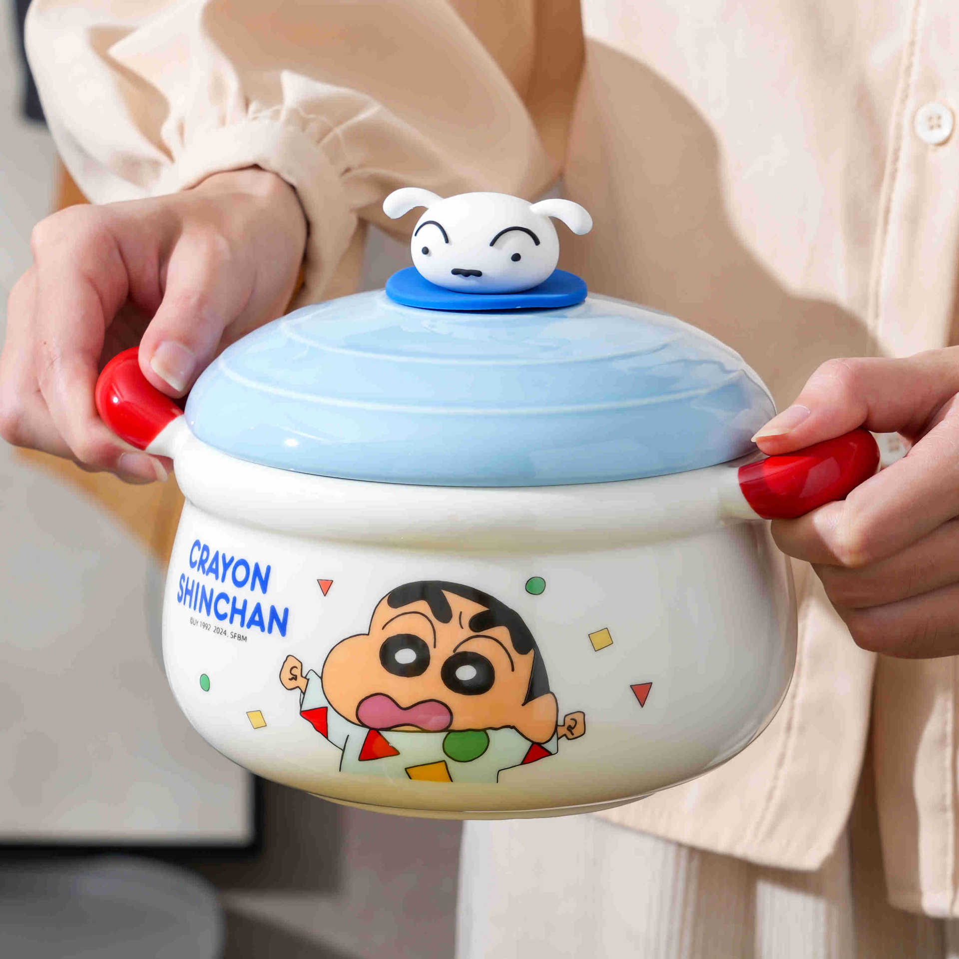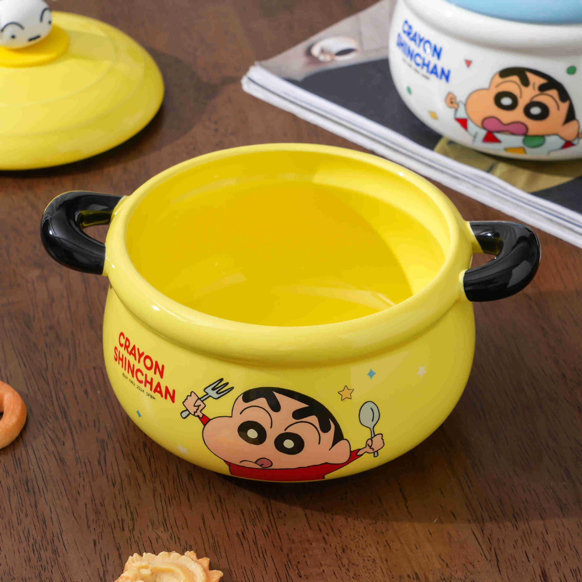 蜡笔小新双耳泡面碗带盖宿舍用学生陶瓷大汤碗伴手礼品生日礼物女