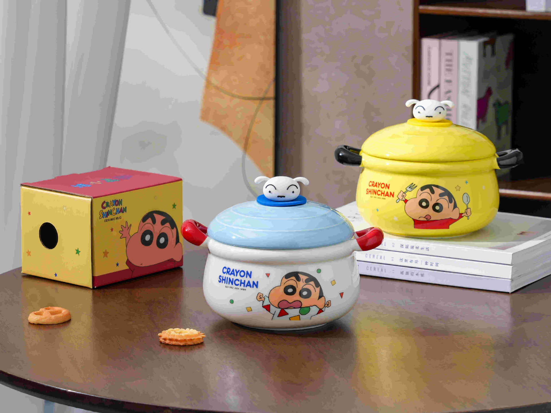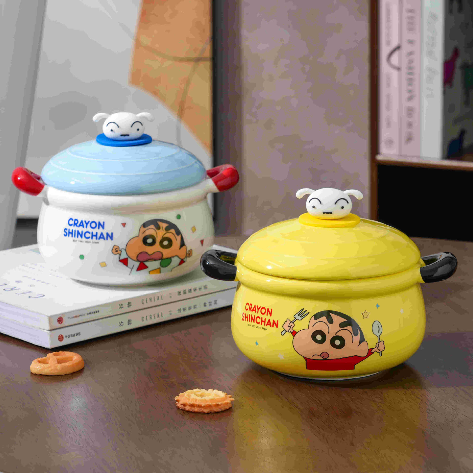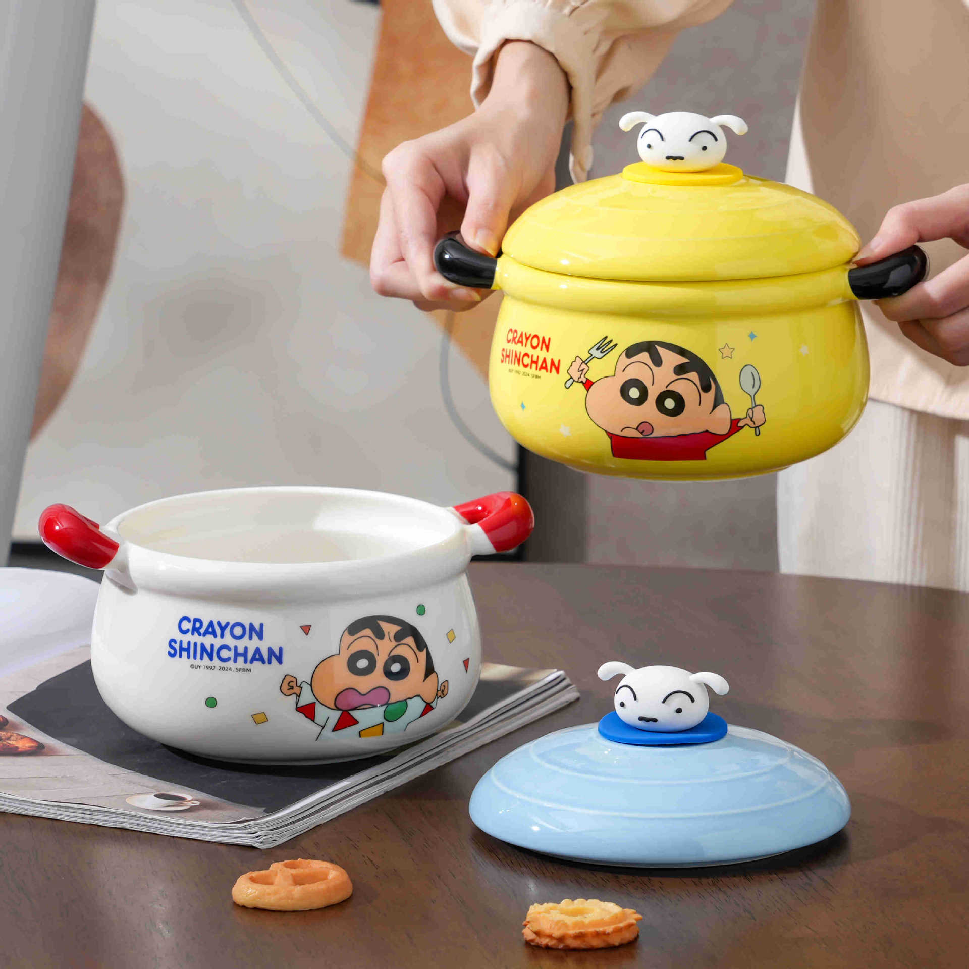 蜡笔小新双耳泡面碗带盖宿舍用学生陶瓷大汤碗伴手礼品生日礼物女