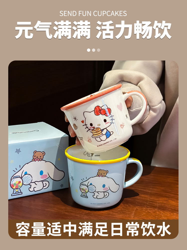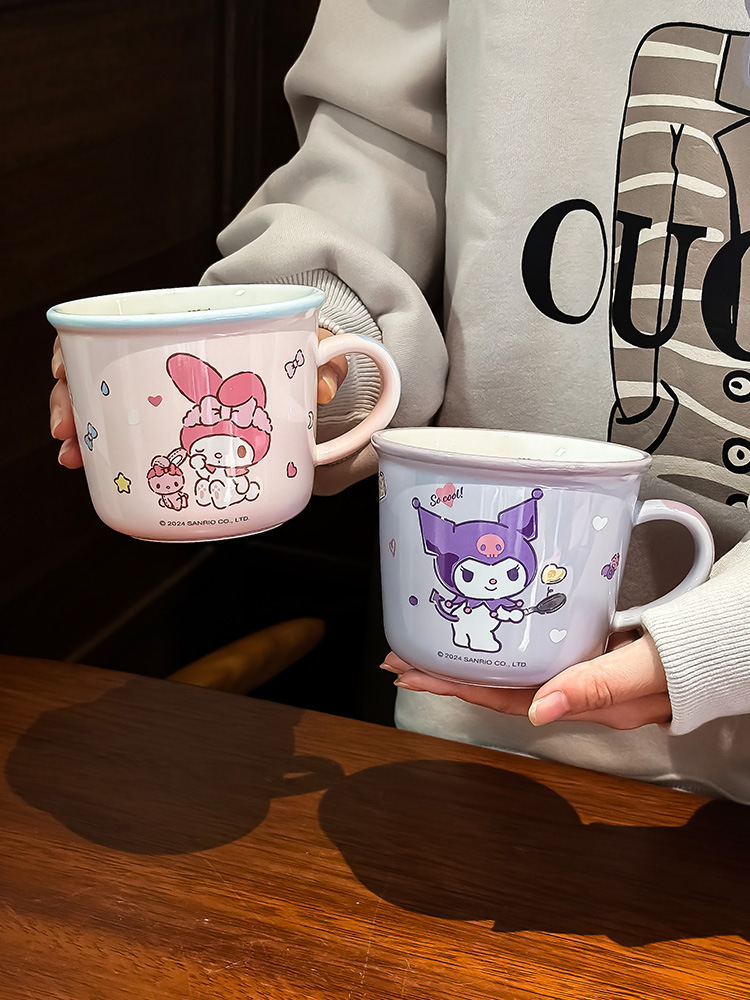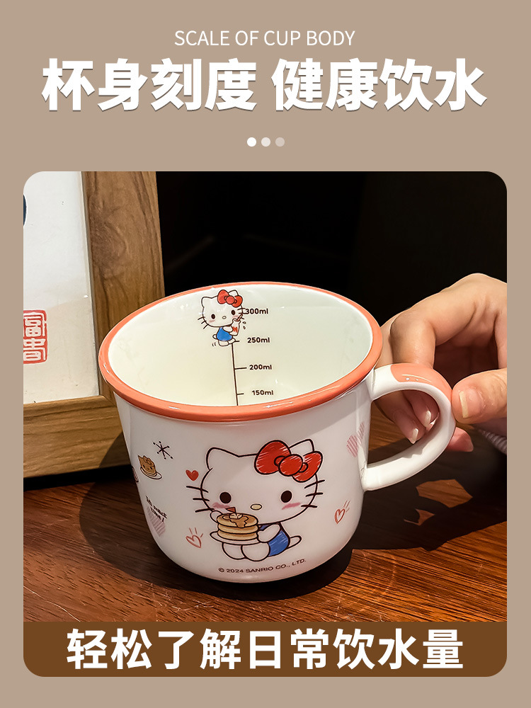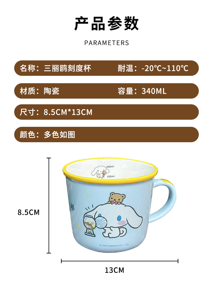 三丽鸥早餐杯库洛米带刻度女生牛奶杯喝水杯创意卡通陶瓷杯水杯子