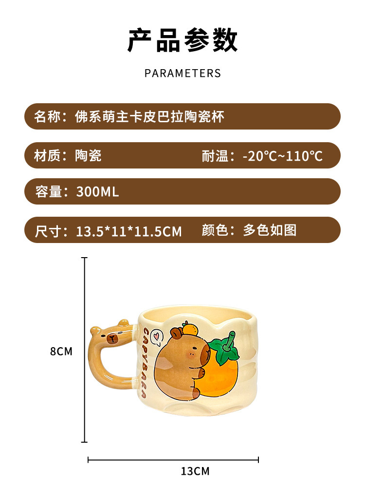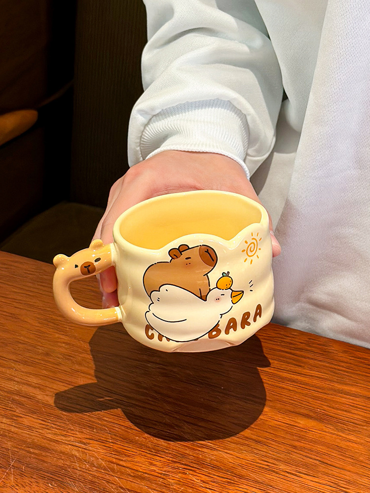 卡皮巴拉叠叠杯子可爱卡通陶瓷马克杯带把手女情侣咖啡杯生日礼物 投诉
