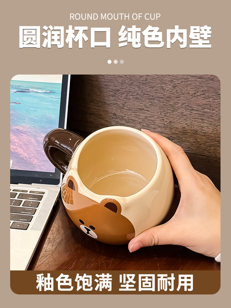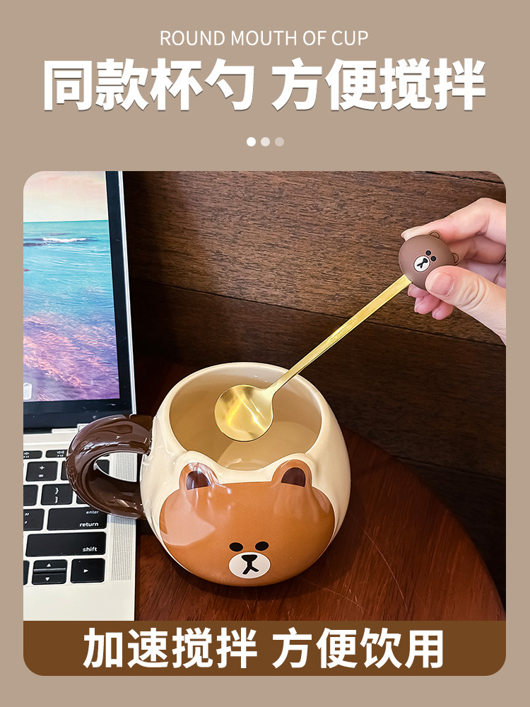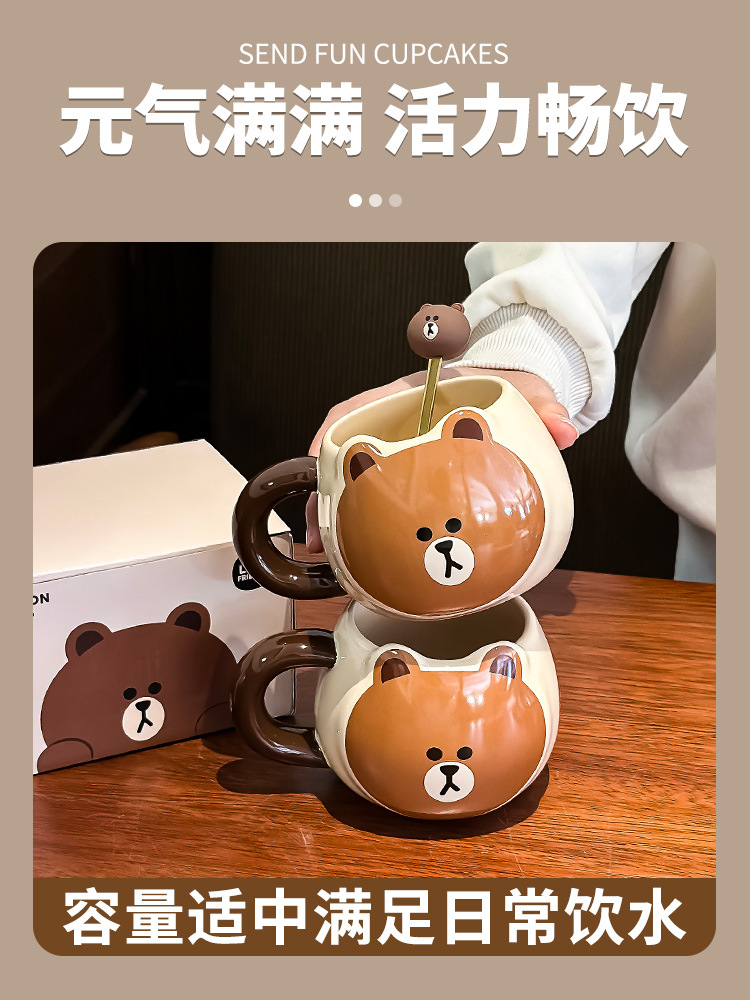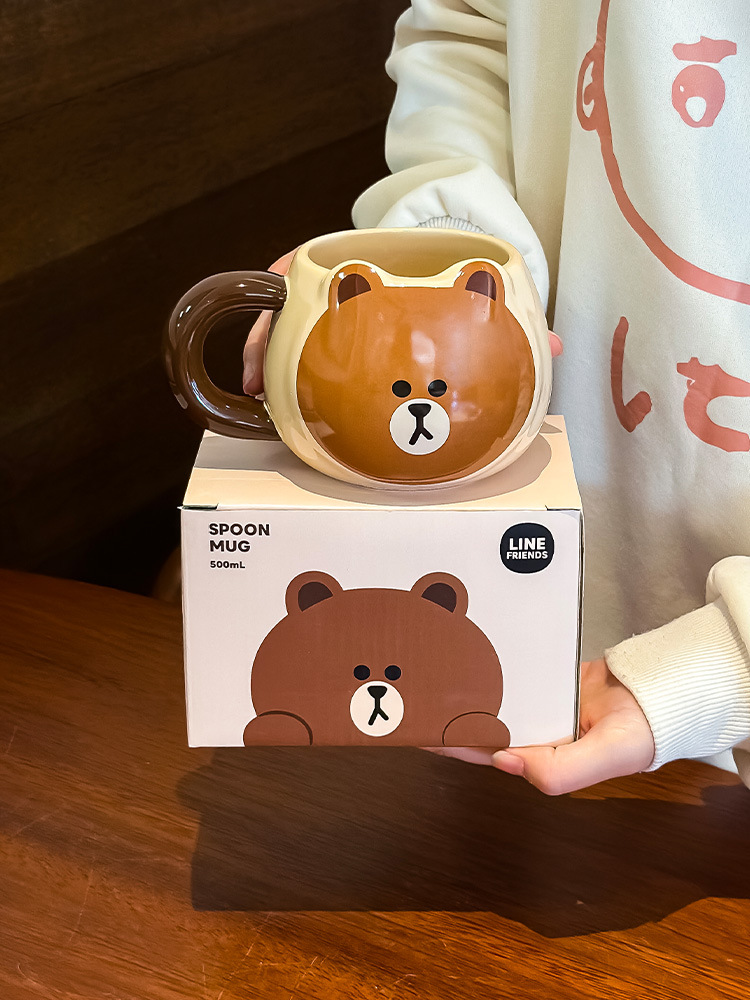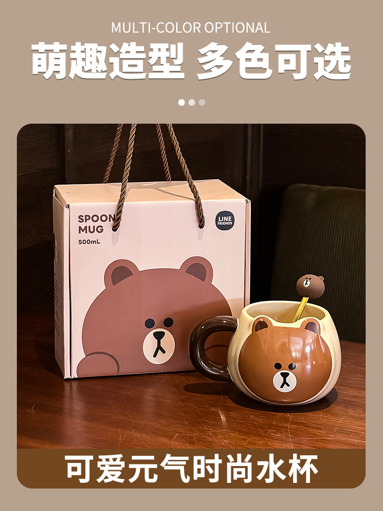布朗熊马克杯办公室带勺陶瓷杯子大肚水杯伴手礼女生日礼物礼盒装