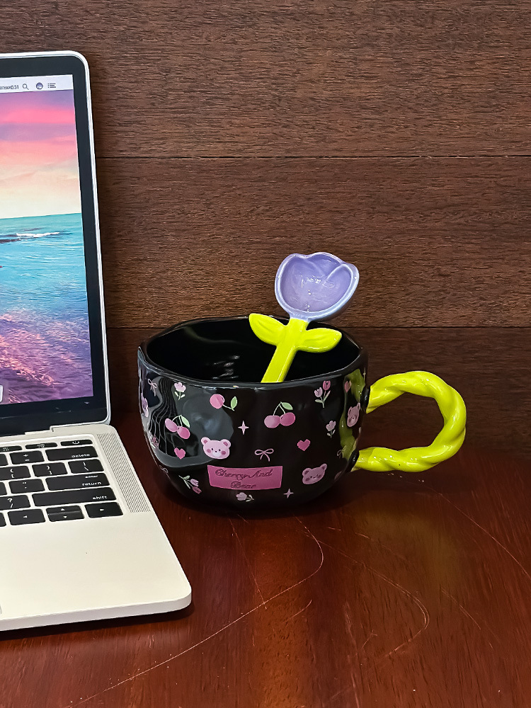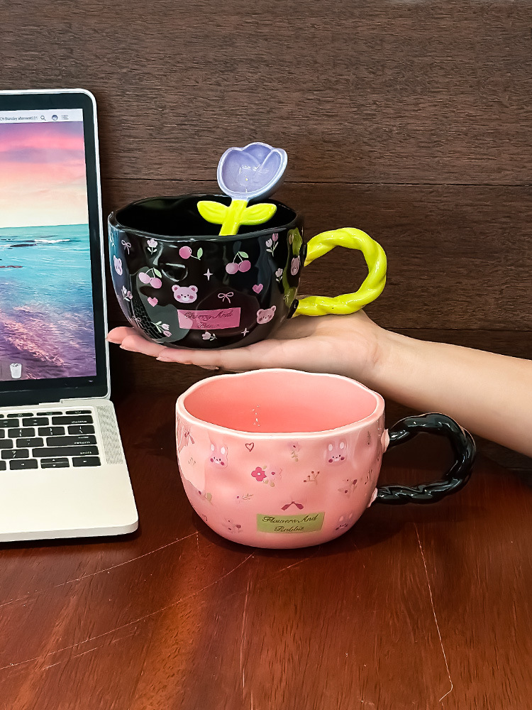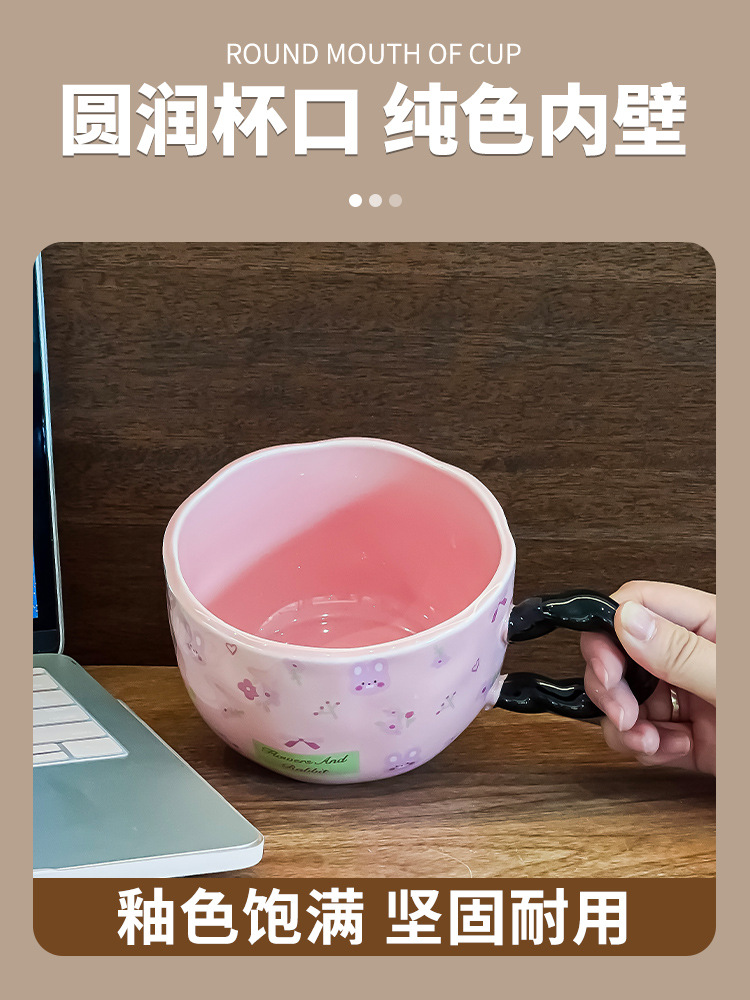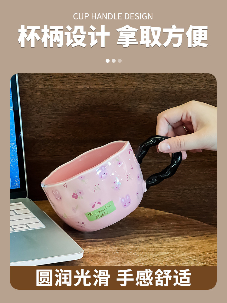 网红少女心陶瓷马克杯设计师原创手绘浮雕大容量水杯早餐牛奶杯子