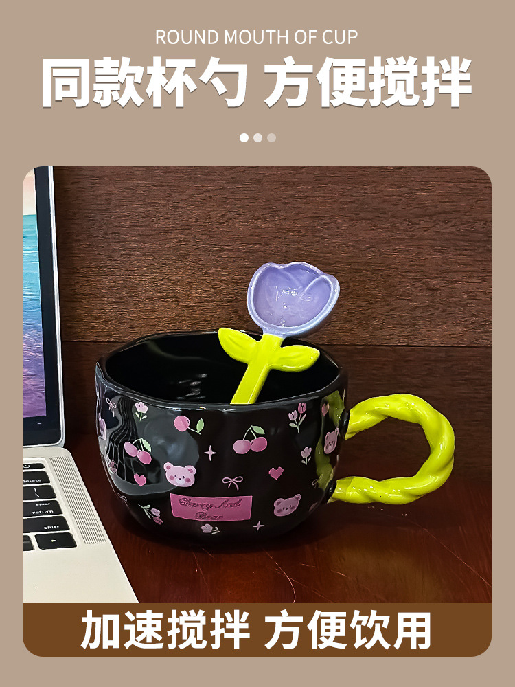 网红少女心陶瓷马克杯设计师原创手绘浮雕大容量水杯早餐牛奶杯子 投诉