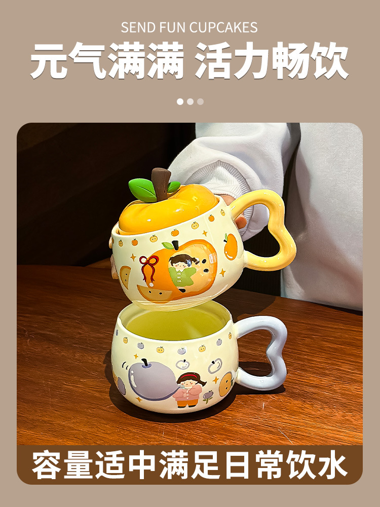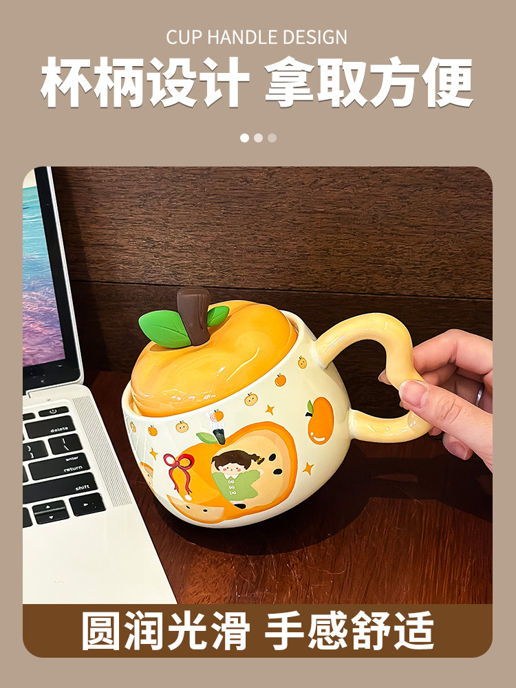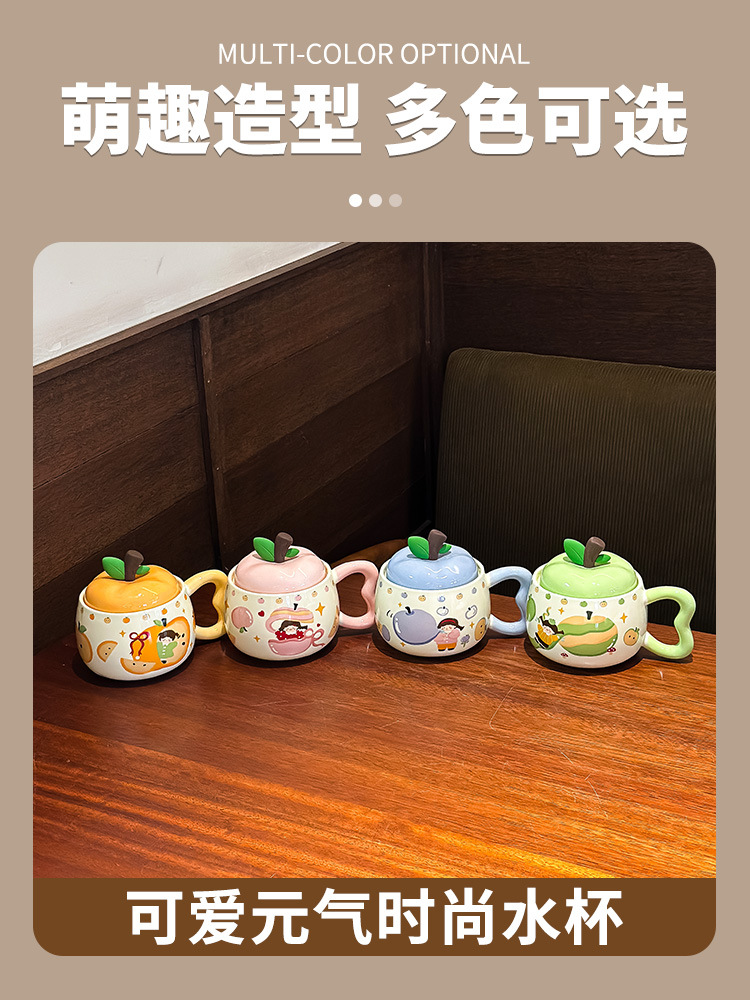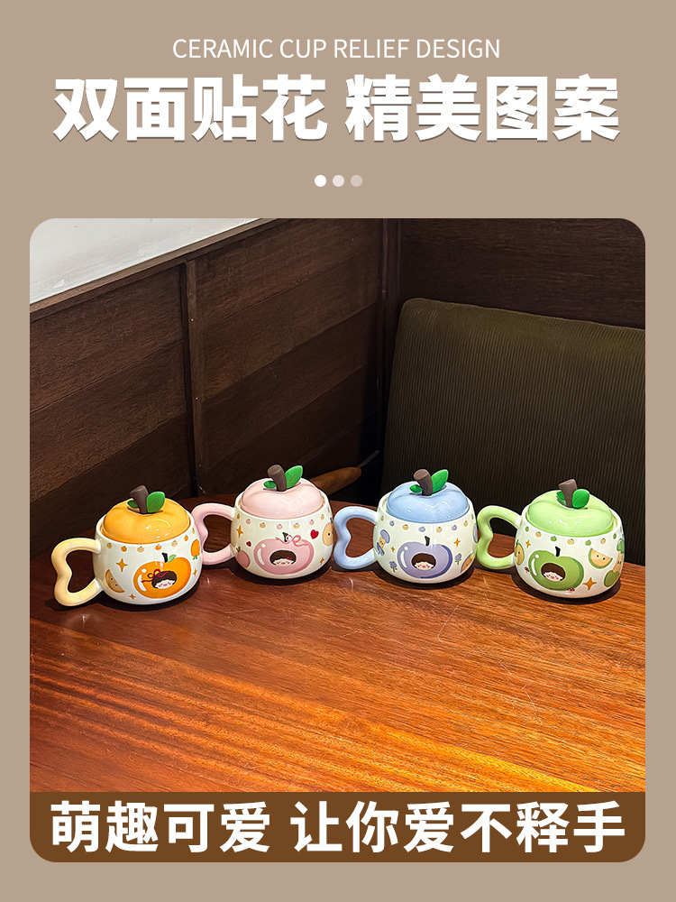 苹果杯子马克杯可爱女2025新款带盖牛奶杯生日礼物伴手礼节日礼品