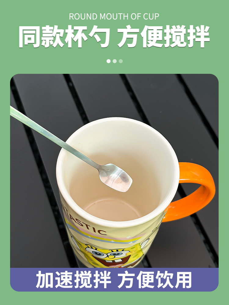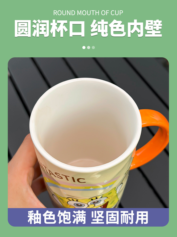 海绵宝宝大容量陶瓷马克杯女生夏季喝水杯子可爱带盖情侣咖啡杯男