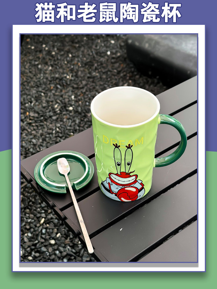 海绵宝宝大容量陶瓷马克杯女生夏季喝水杯子可爱带盖情侣咖啡杯男 投诉