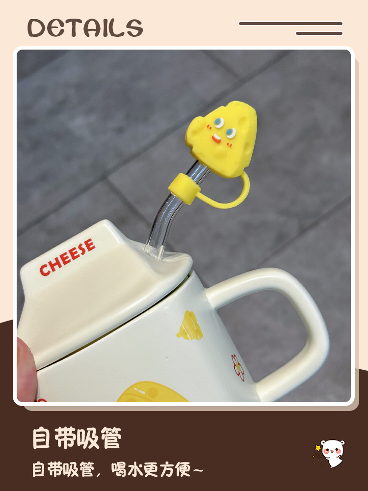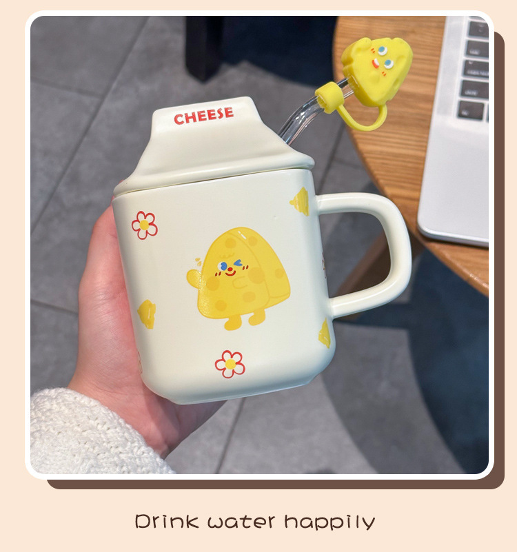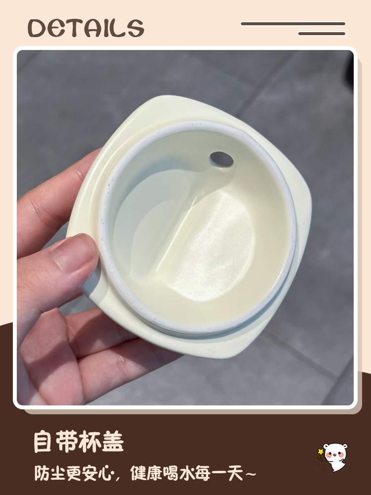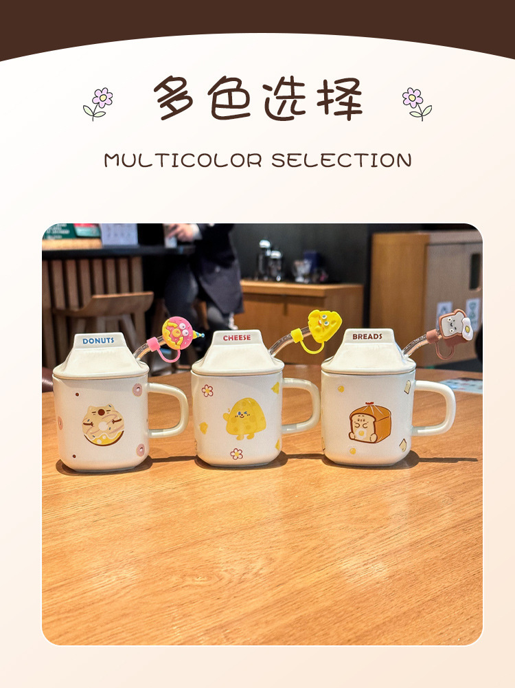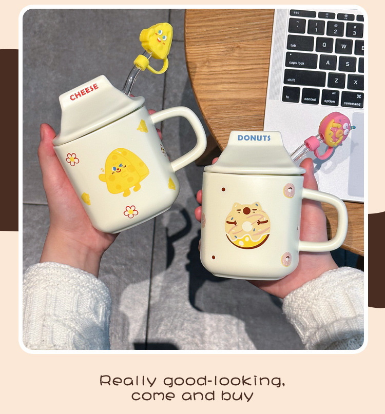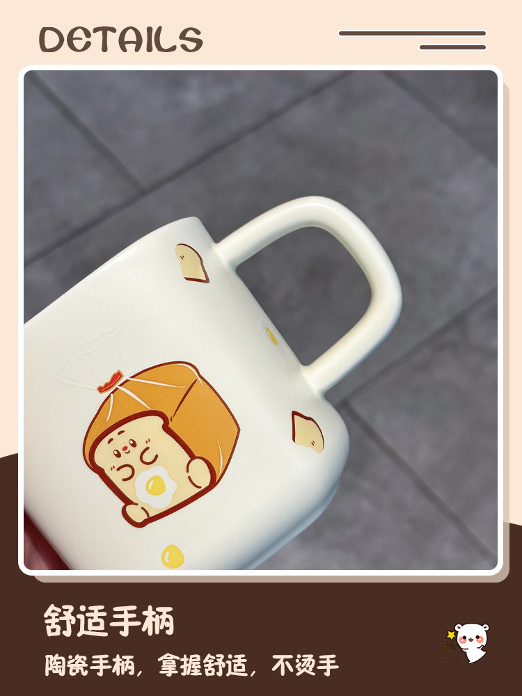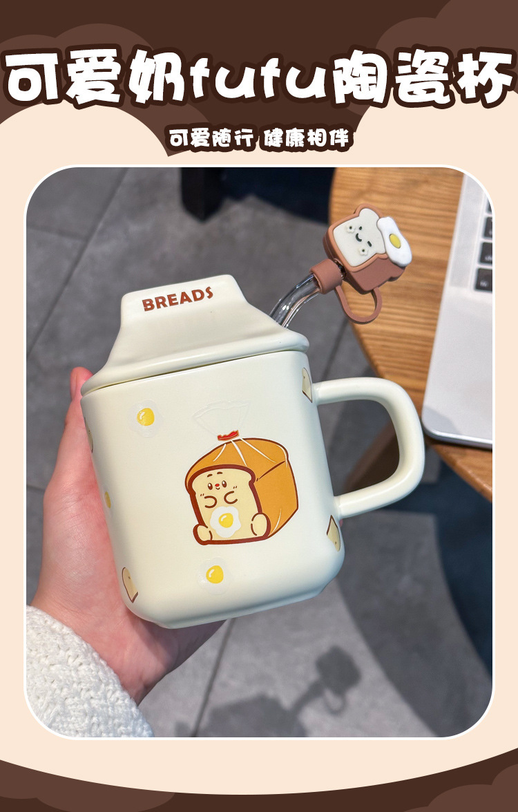 奶fufu情侣杯子陶瓷马克杯带盖高颜值女生男生牛奶咖啡杯可爱卡通