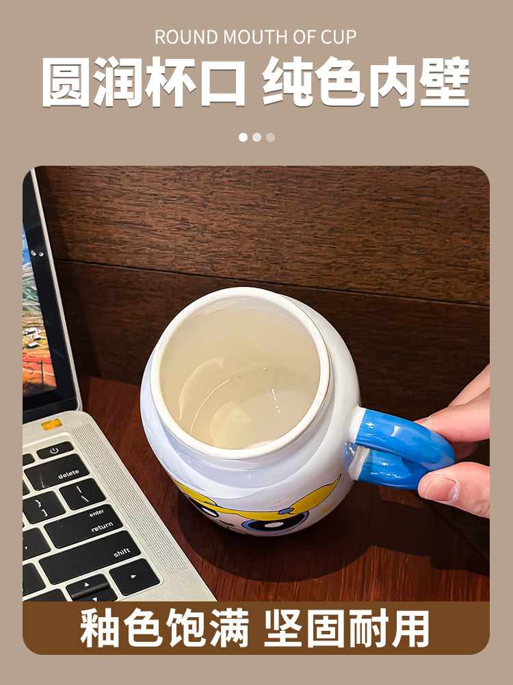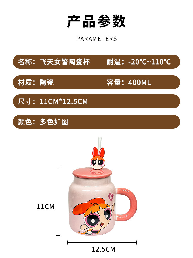 飞天小女警新款可爱带盖陶瓷马克杯家用咖啡杯情侣生日礼物牛奶杯 投诉