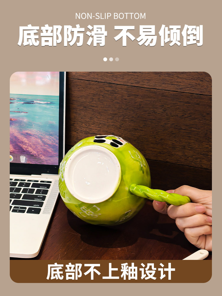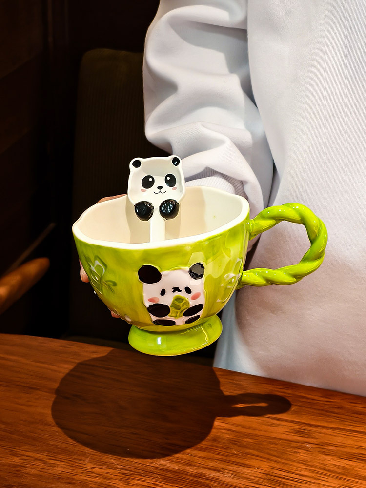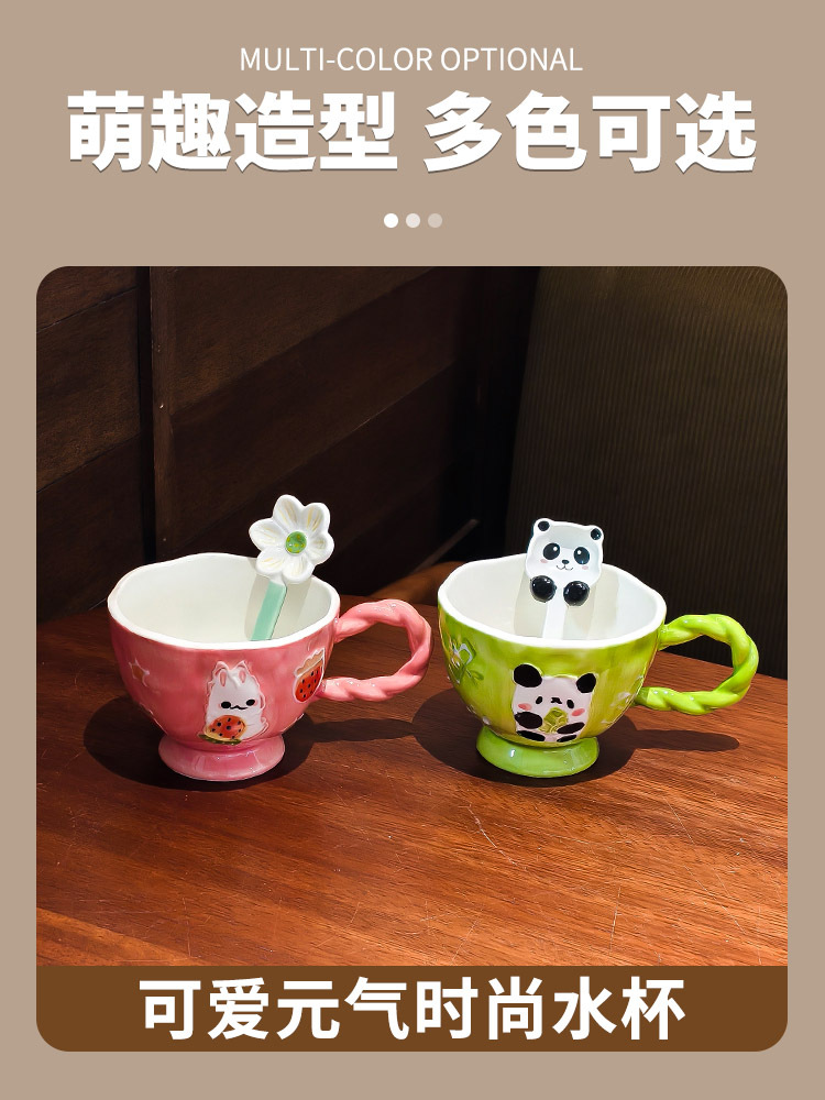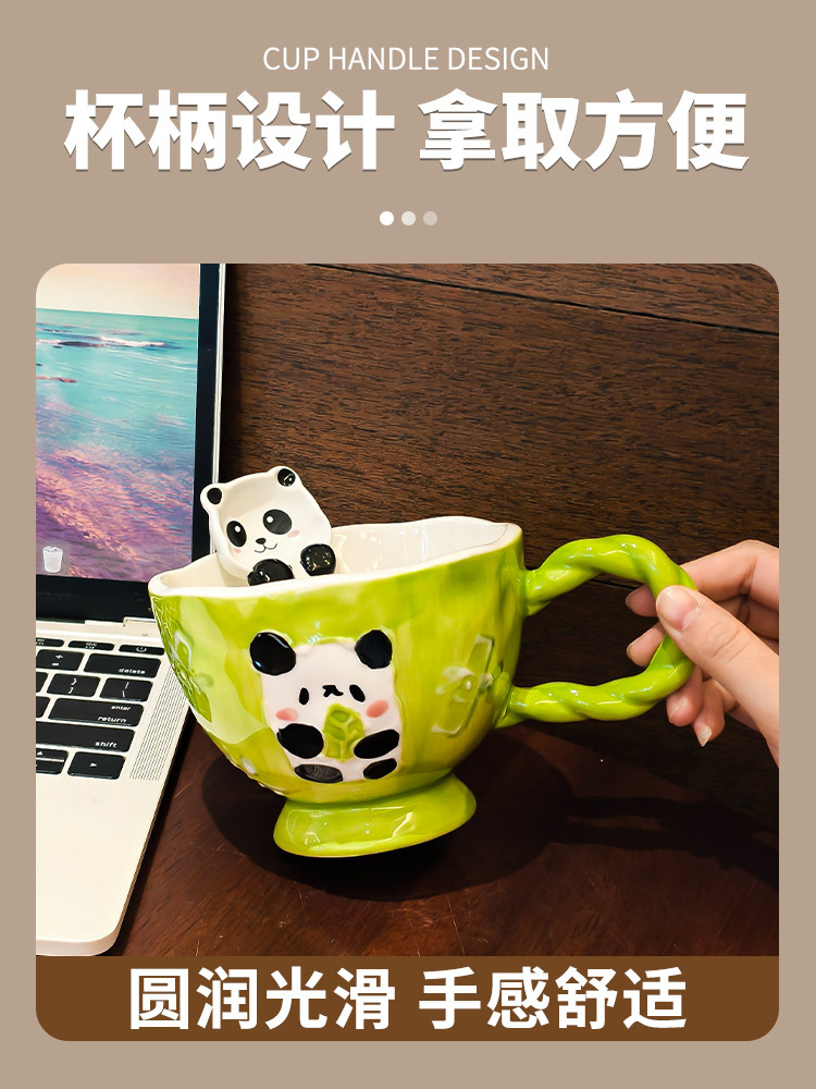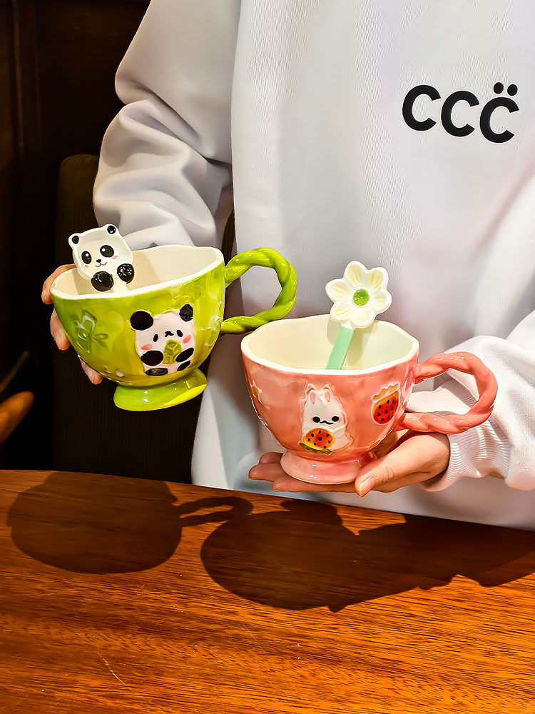 手绘浮雕卡通陶瓷杯高颜值马克杯早餐可爱杯子家用燕麦水杯咖啡杯