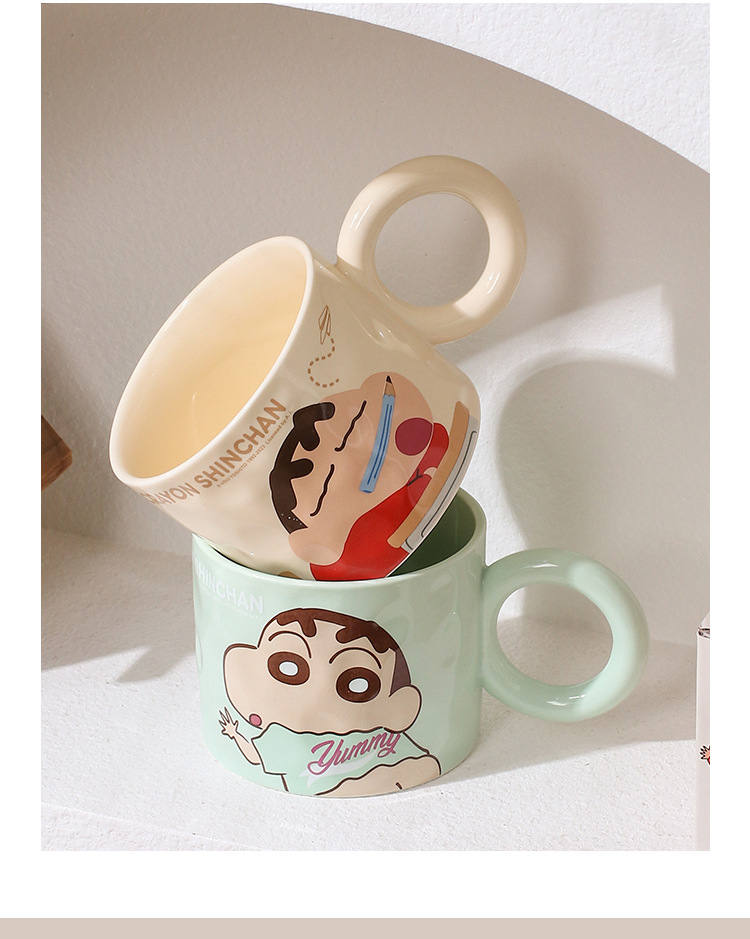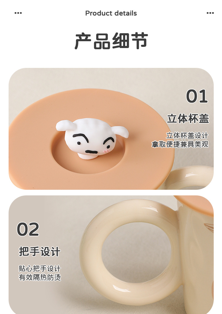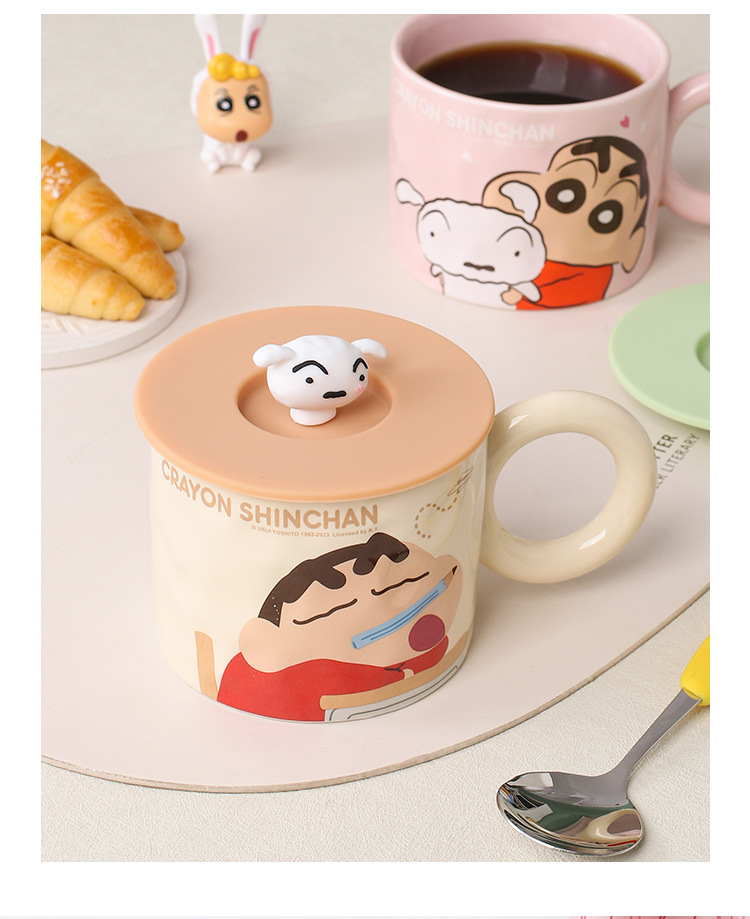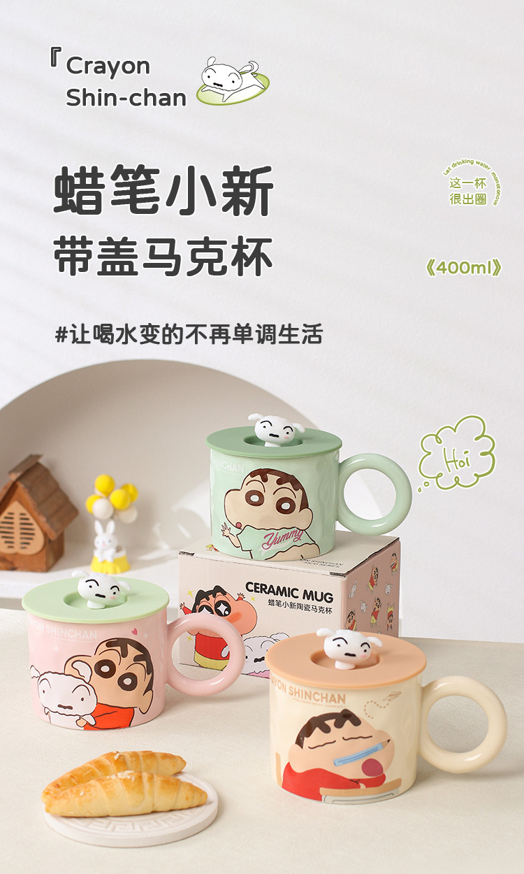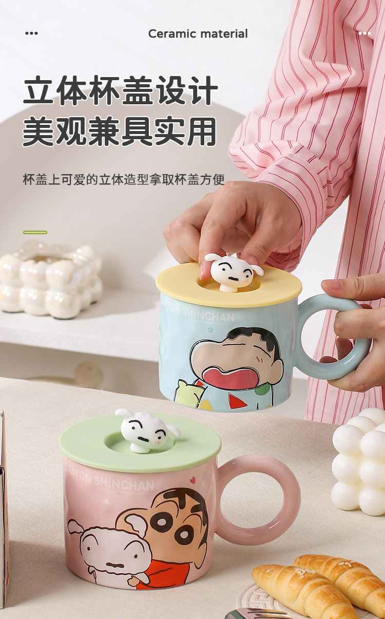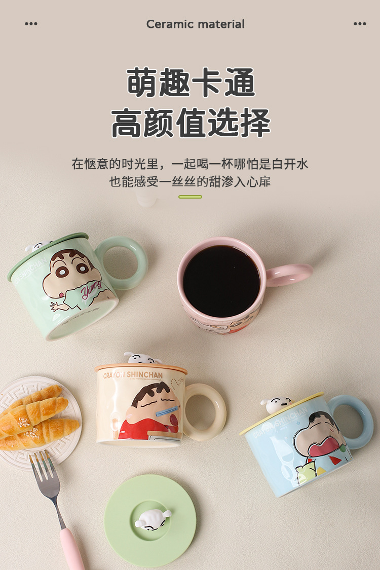 蜡笔小新陶瓷马克杯带盖家用儿童可爱水杯卡通生日礼物女情侣杯子