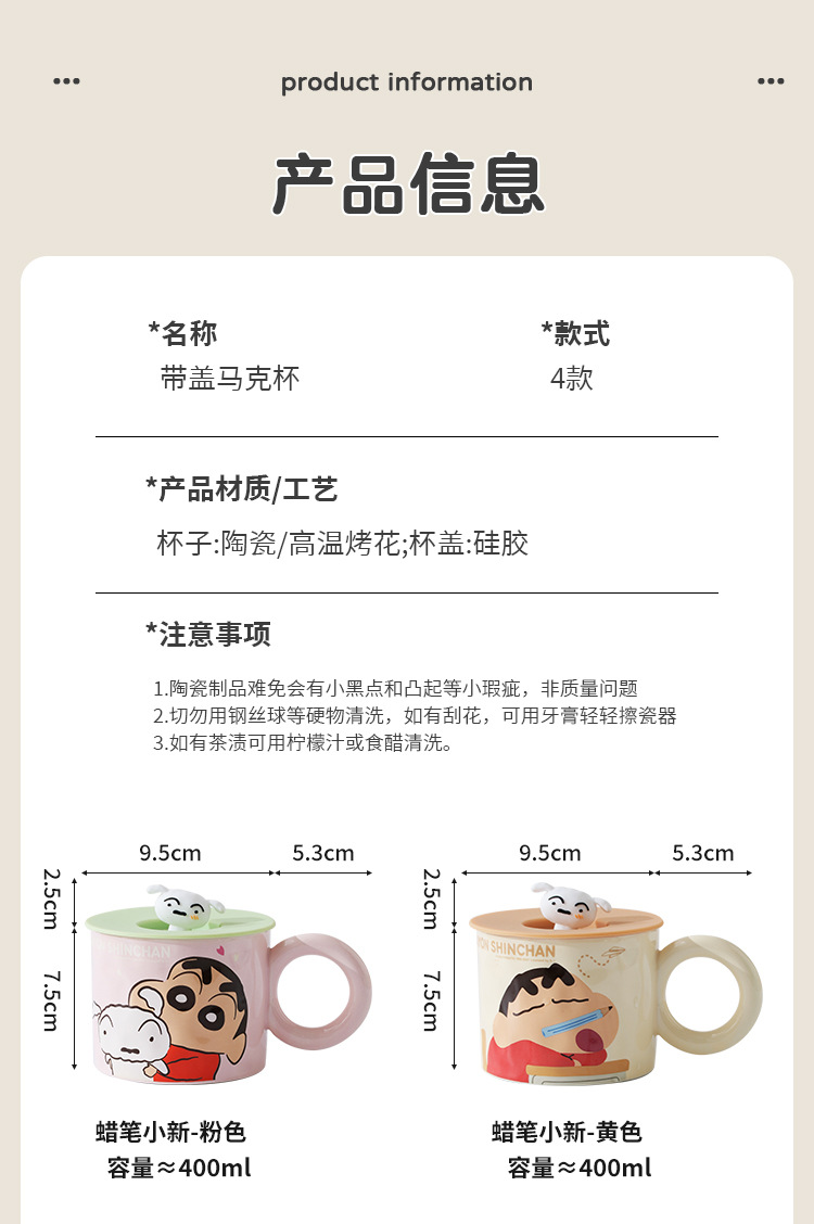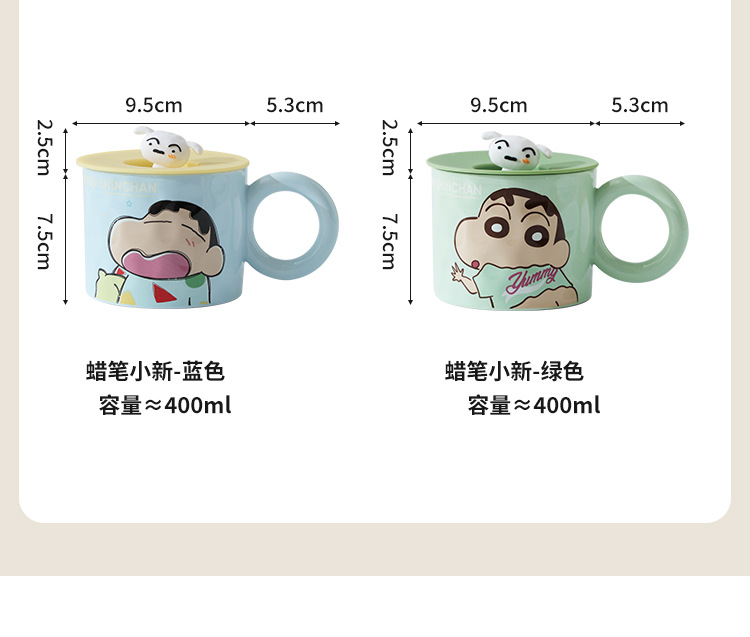 蜡笔小新陶瓷马克杯带盖家用儿童可爱水杯卡通生日礼物女情侣杯子 投诉