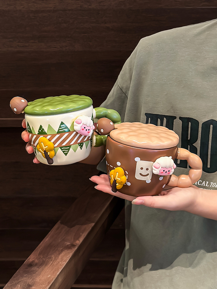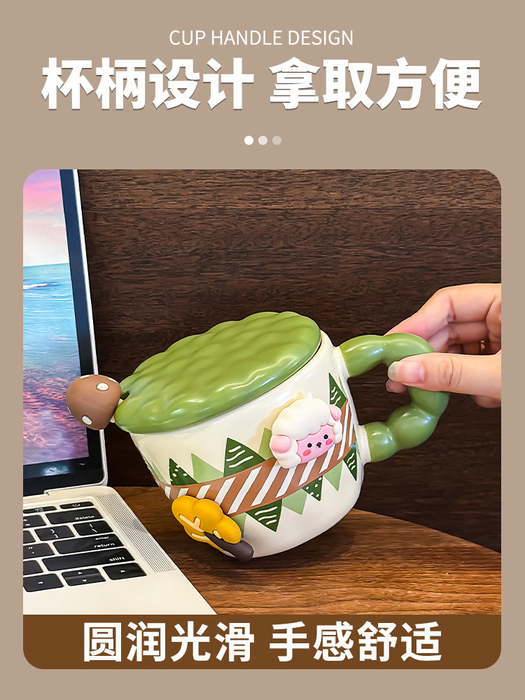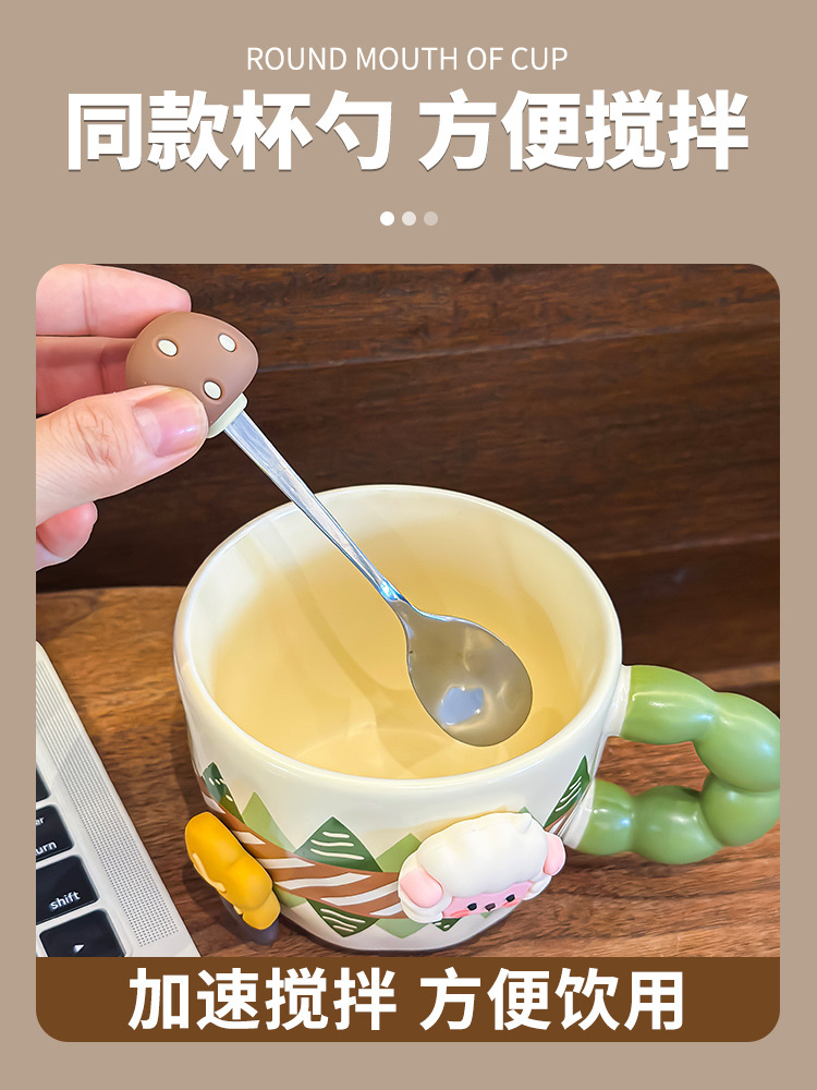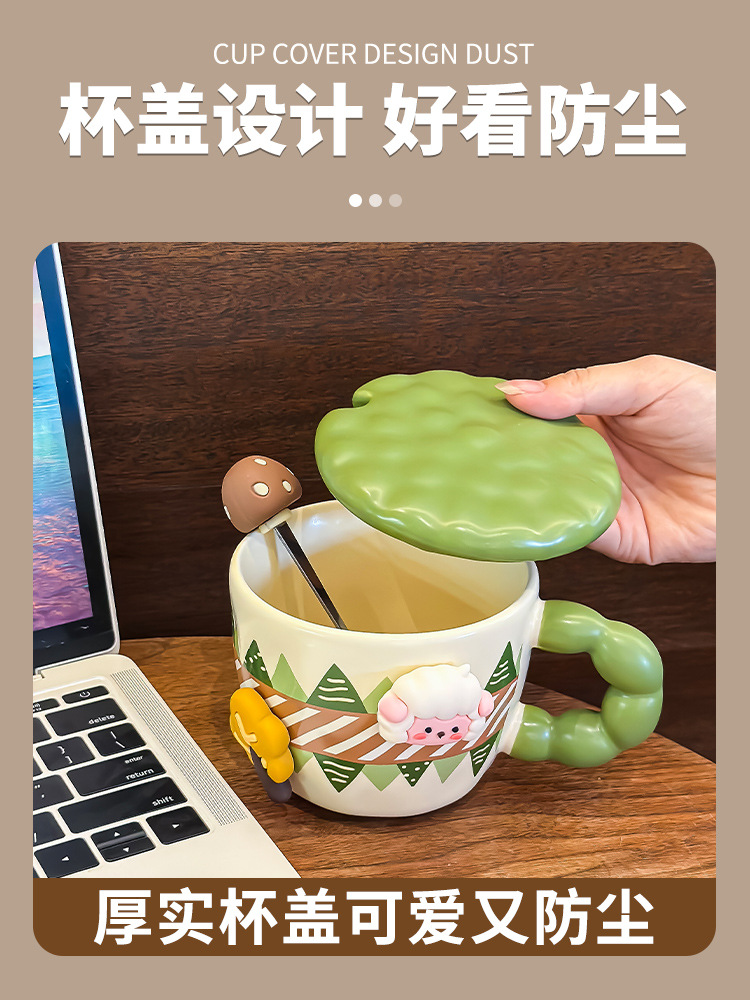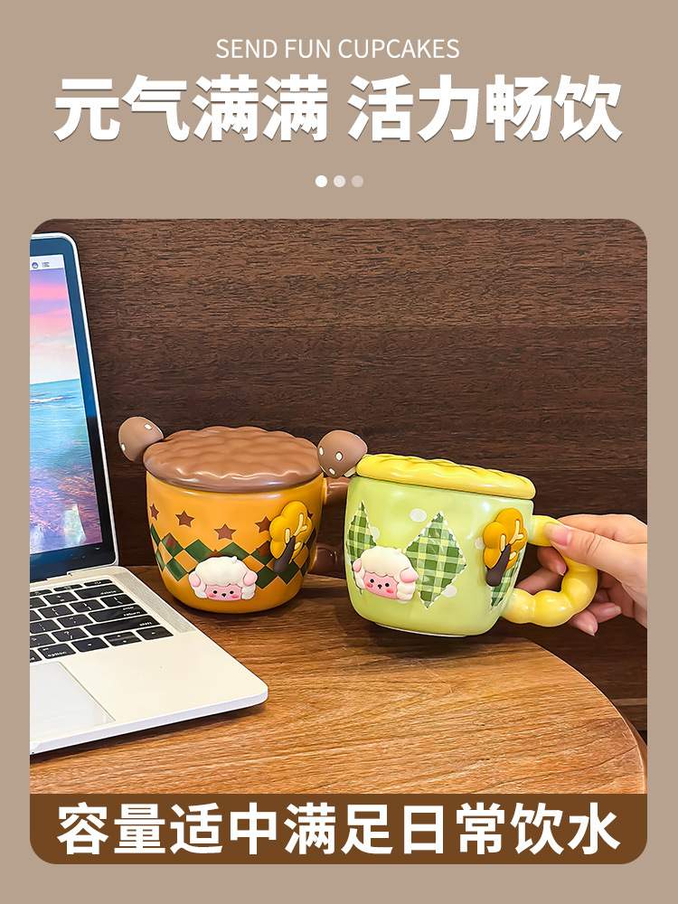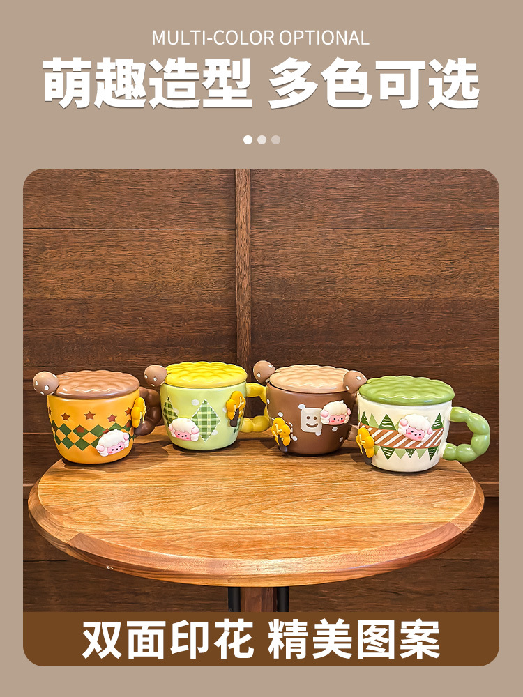 创意可爱喝水杯子马克杯带盖带勺陶瓷杯宿舍用办公室早餐生日礼物
