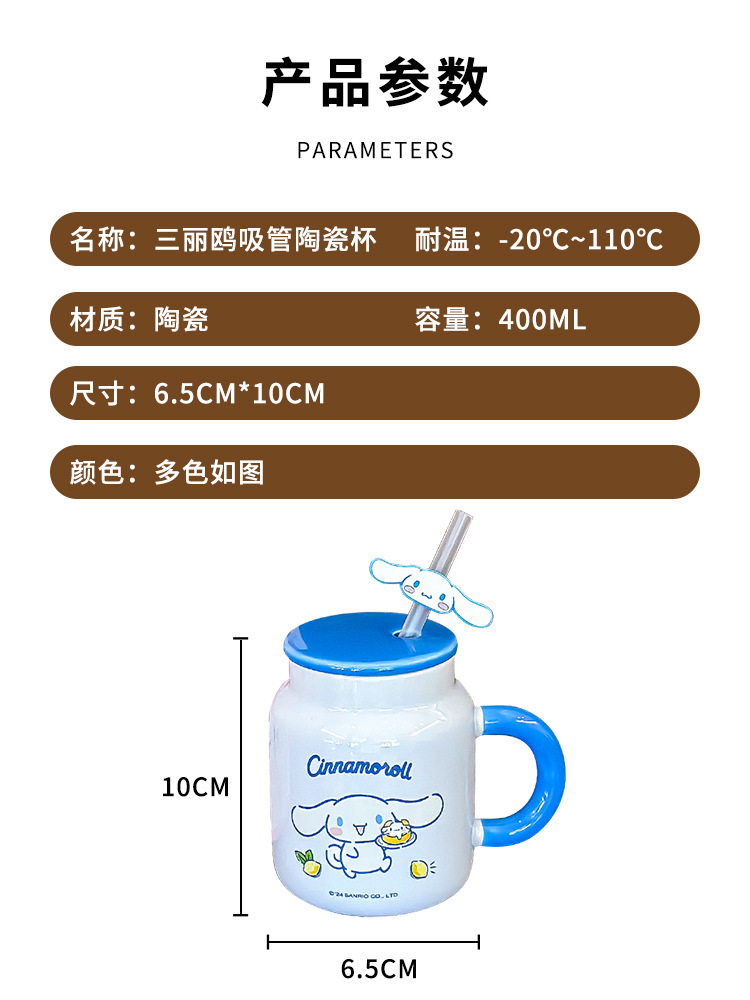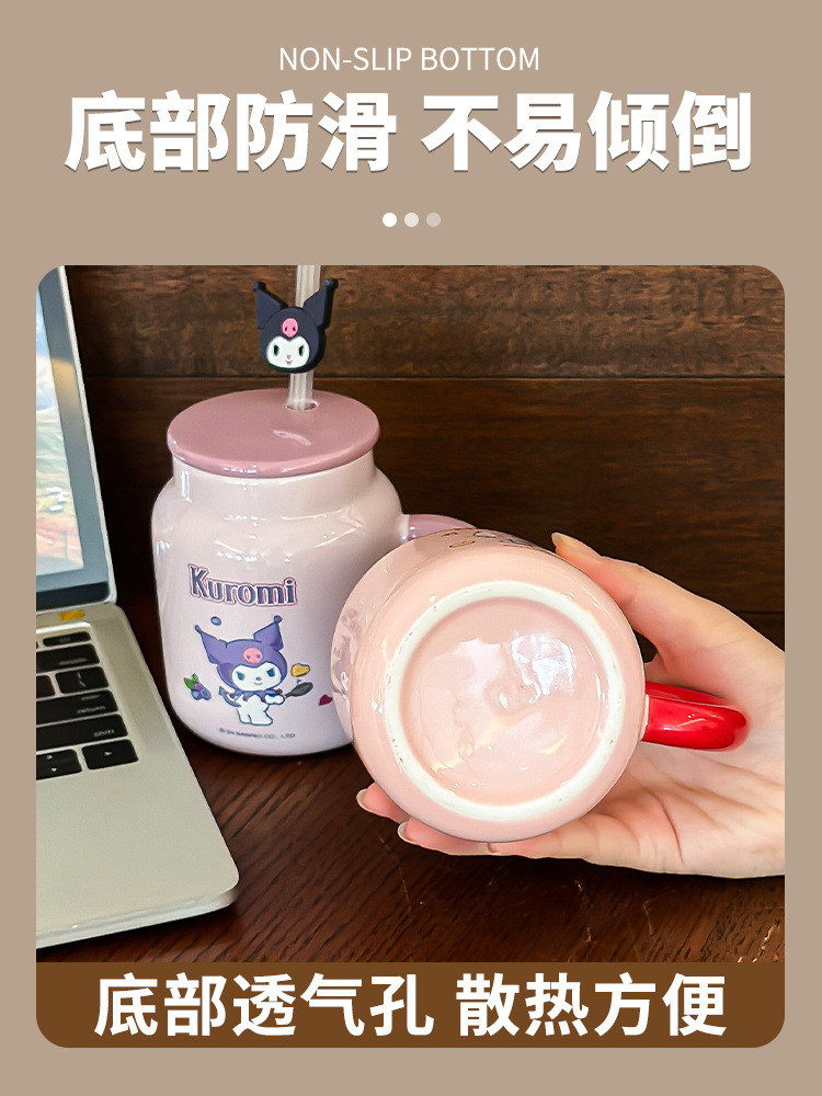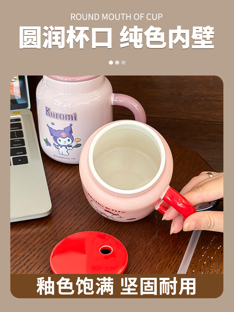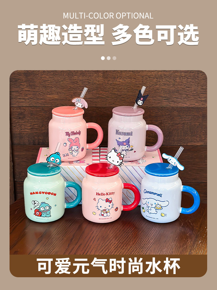 正品三丽鸥马克杯精美彩盒带盖带吸管杯子卡通图案高颜值陶瓷水杯