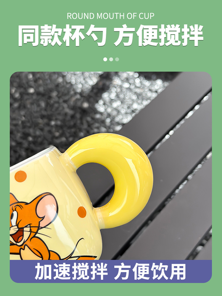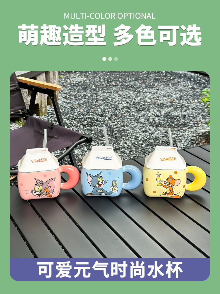 猫和老鼠酸奶马克杯高颜值吸管杯宿舍用咖啡杯可爱创意女生陶瓷杯