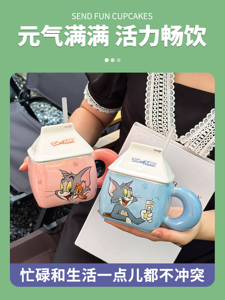 猫和老鼠酸奶马克杯高颜值吸管杯宿舍用咖啡杯可爱创意女生陶瓷杯 投诉
