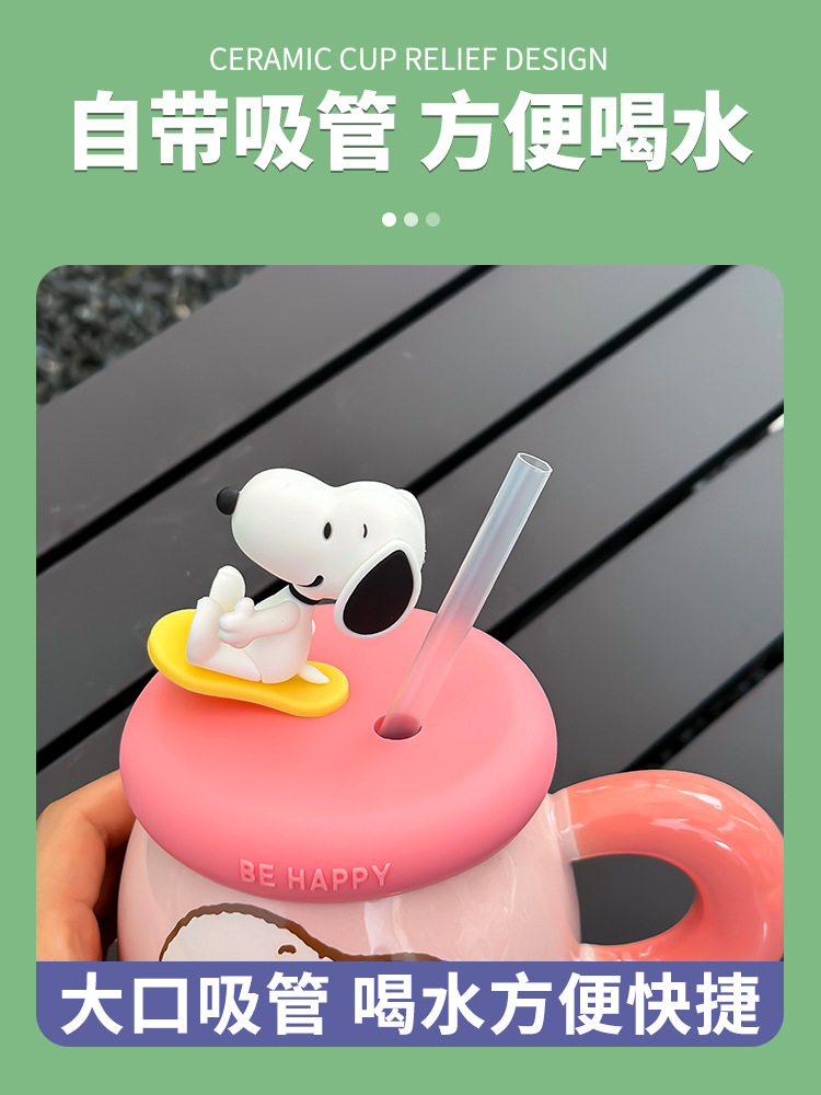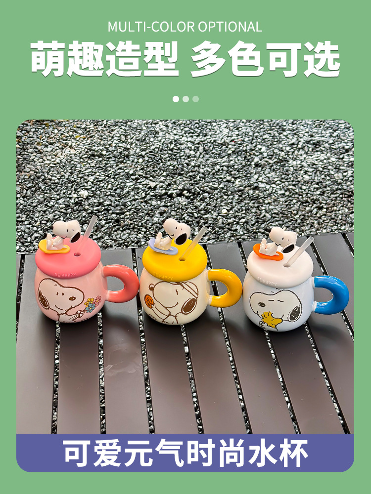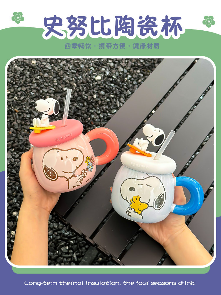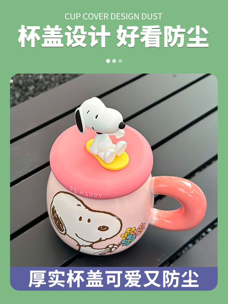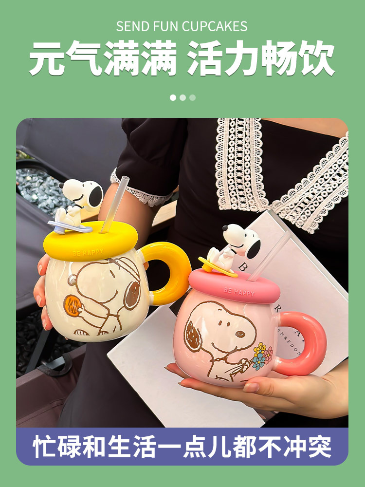 正版史努比马克杯可爱情侣创意陶瓷杯子高颜值生日礼物带盖喝水杯