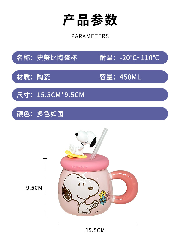 正版史努比马克杯可爱情侣创意陶瓷杯子高颜值生日礼物带盖喝水杯 投诉