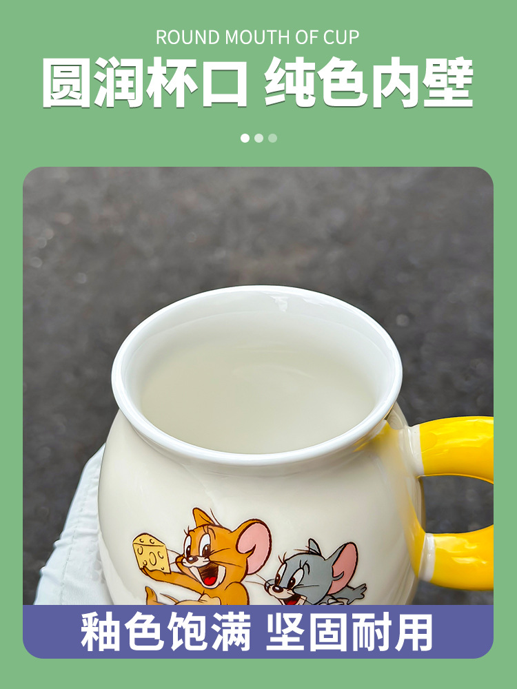 家用儿童生日礼物马克杯带盖可爱猫和老鼠水杯大容量陶瓷杯伴手礼