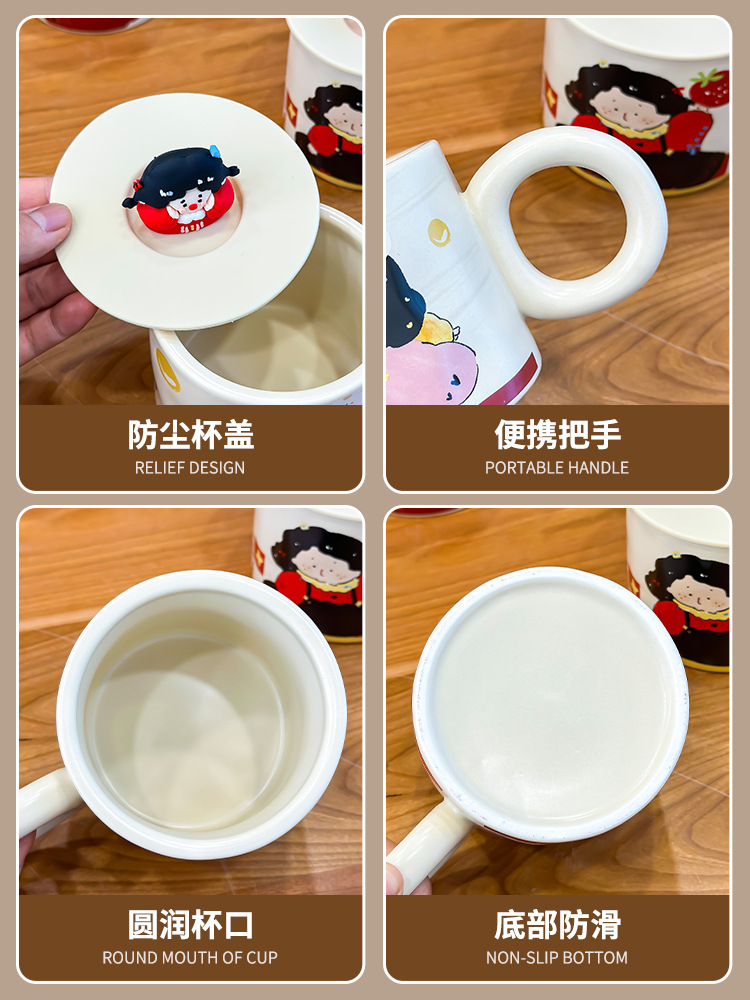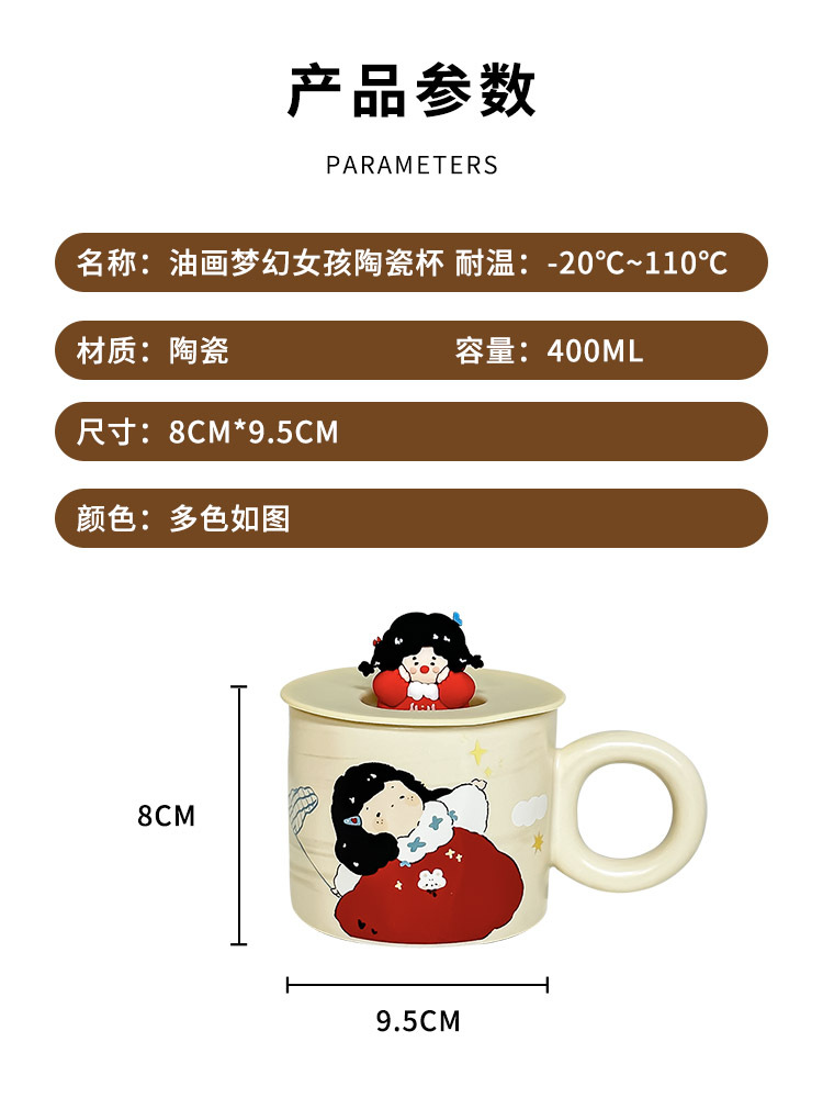 油画梦幻女孩马克杯带盖可爱卡通杯子高颜值奶呼呼水杯奶茶早餐杯 投诉