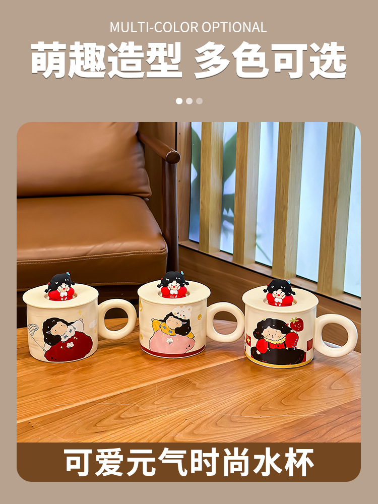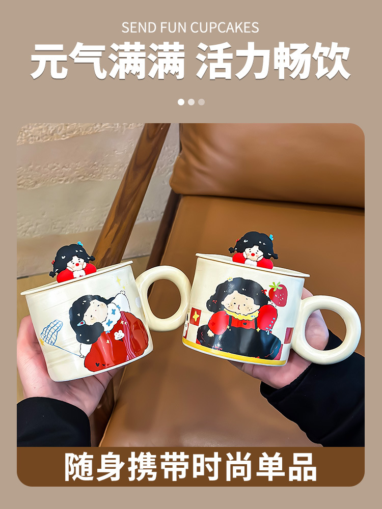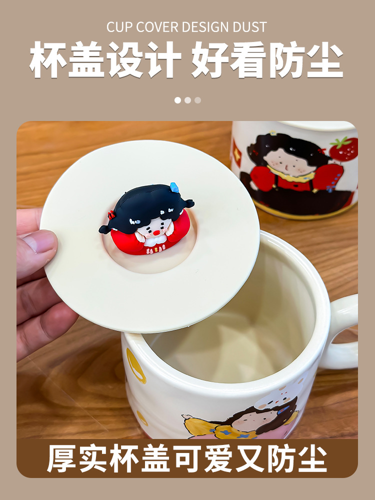 油画梦幻女孩马克杯带盖可爱卡通杯子高颜值奶呼呼水杯奶茶早餐杯