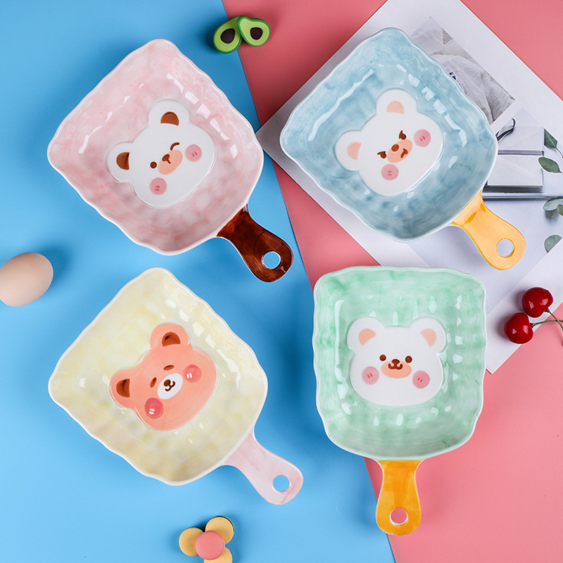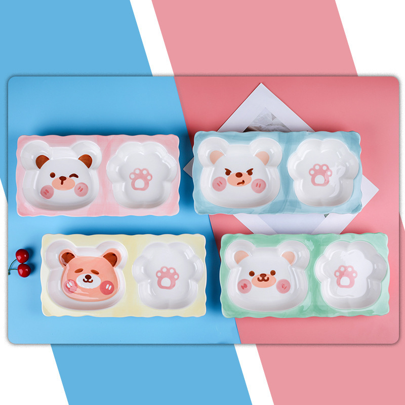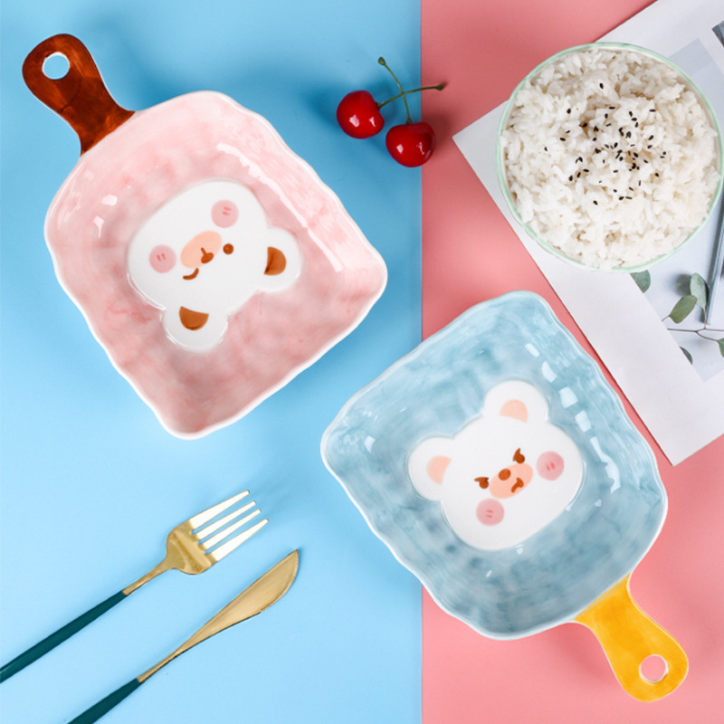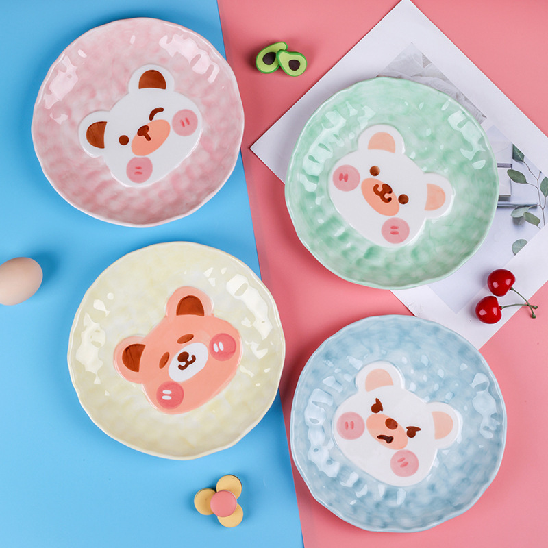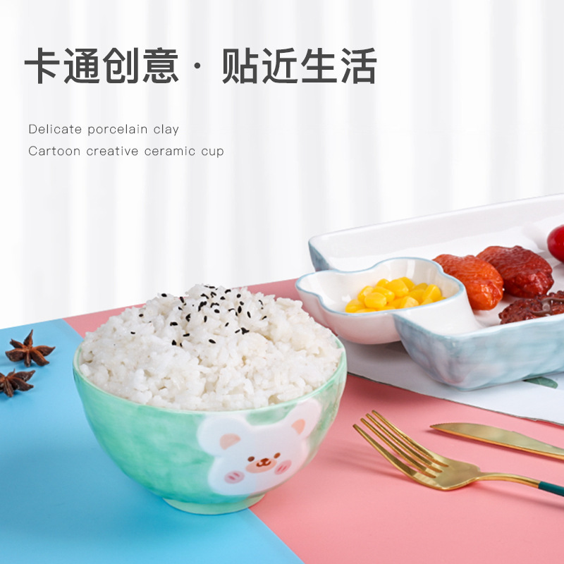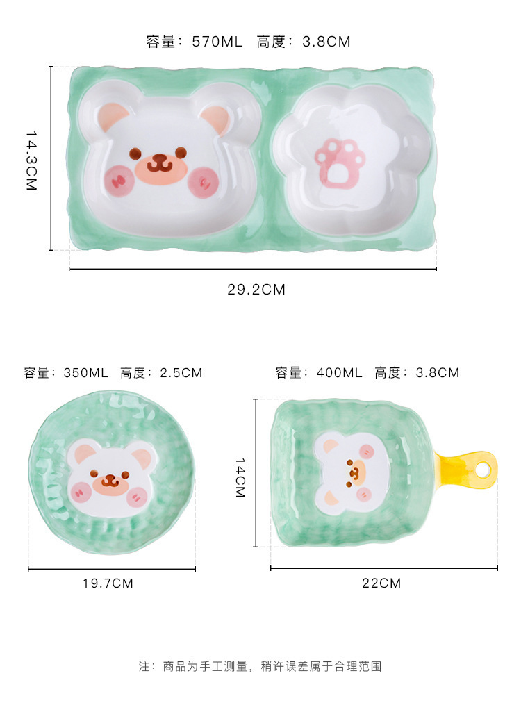 可爱呆萌小熊系列陶瓷餐具 手绘釉下彩儿童碗盘 创意个性立体造型 投诉