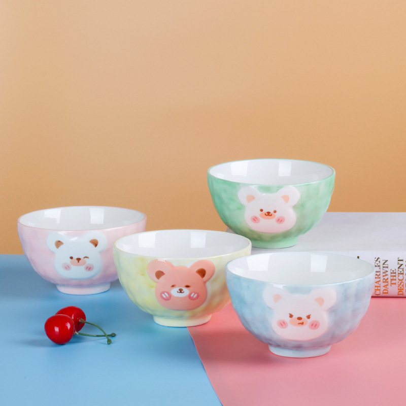 可爱呆萌小熊系列陶瓷餐具 手绘釉下彩儿童碗盘 创意个性立体造型