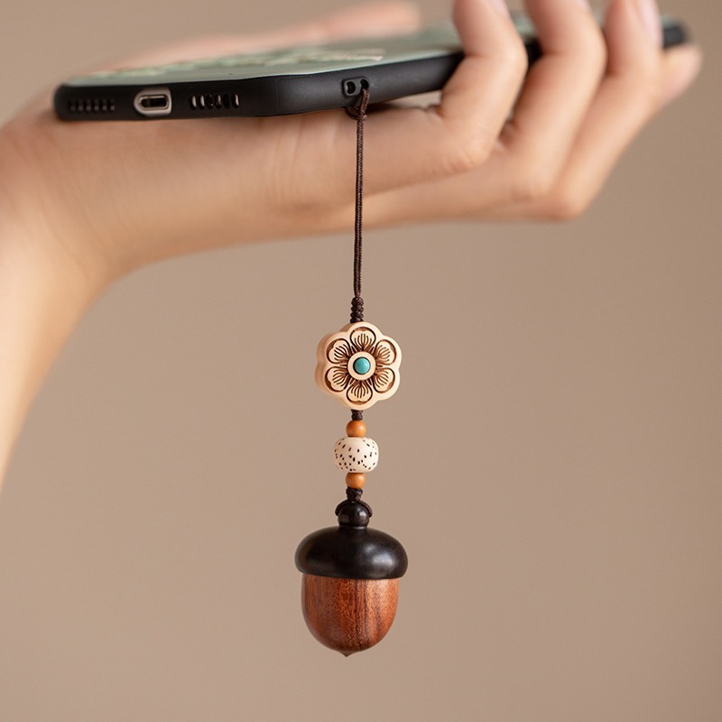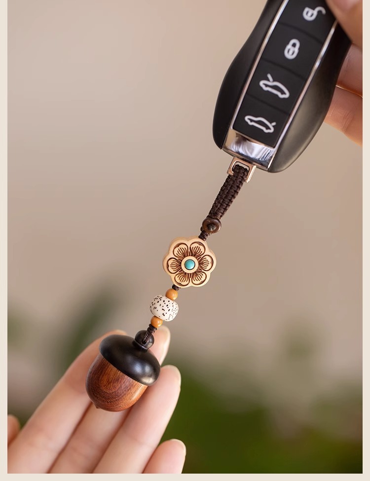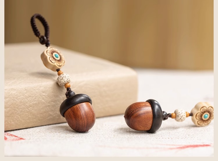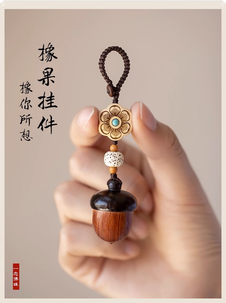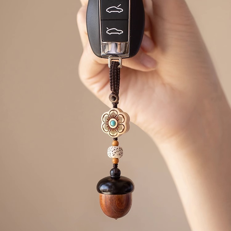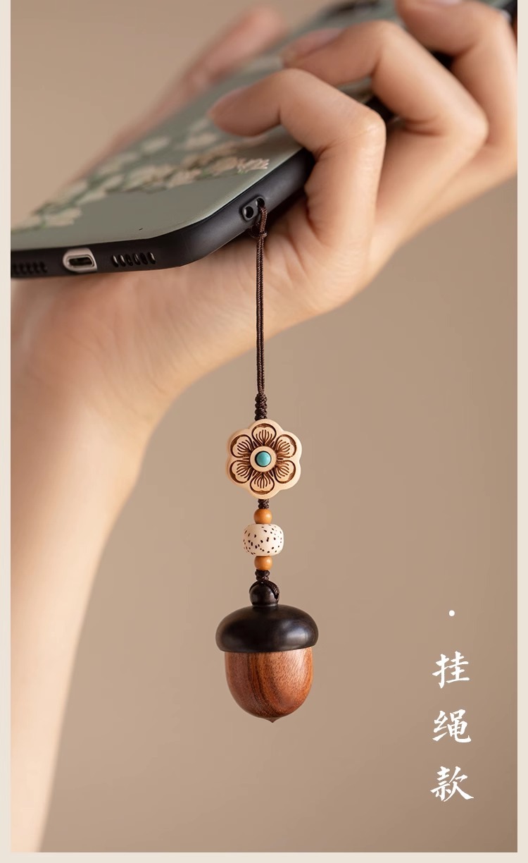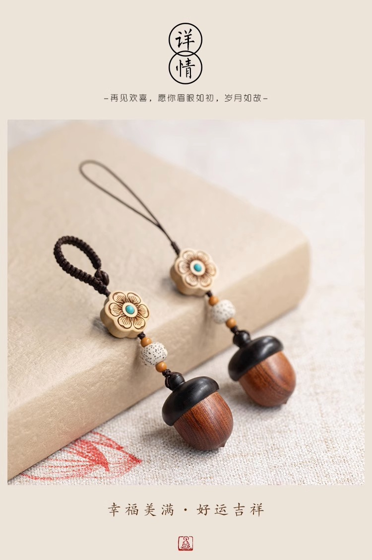 檀木橡果汽车钥匙扣挂件可爱手机链吊坠可拧开女网红饰品厂家批发