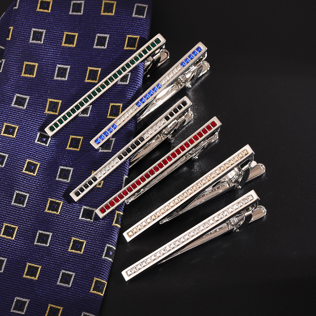 新款男士轻奢6公分细夹精品水晶领带夹 高档商务西装锆石领夹 English | 投诉