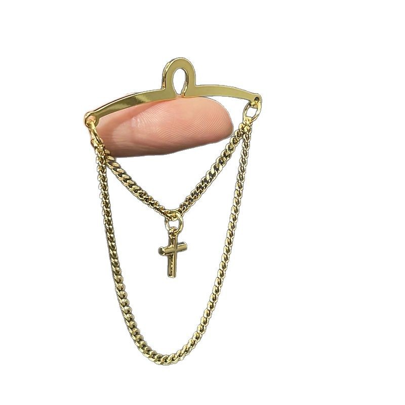 新款男士简约十字架时尚领带配饰 金银链条领带固定器 领带饰..