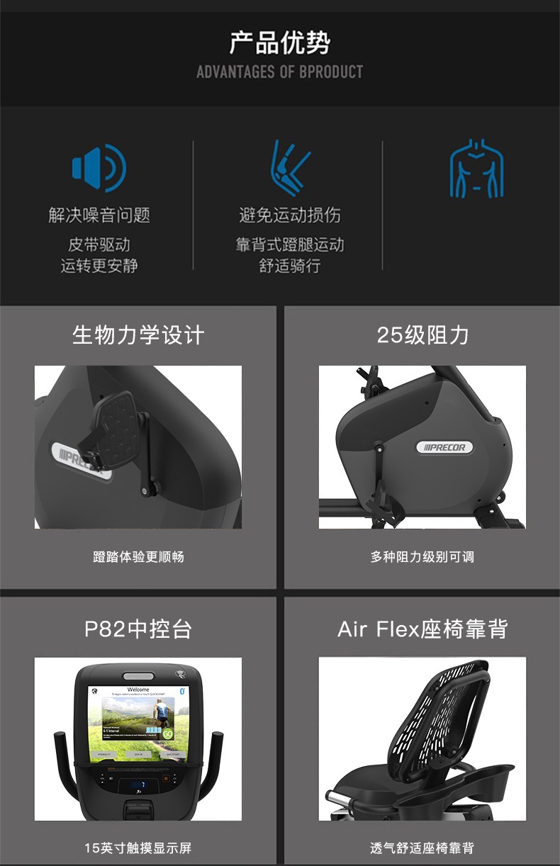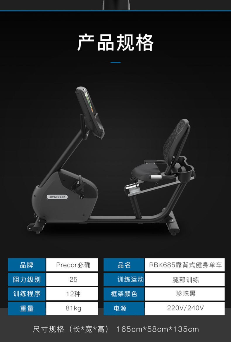 美国必确RBK685商用电磁控背靠卧式健身车健身房室内运动脚踏车 English | 投诉