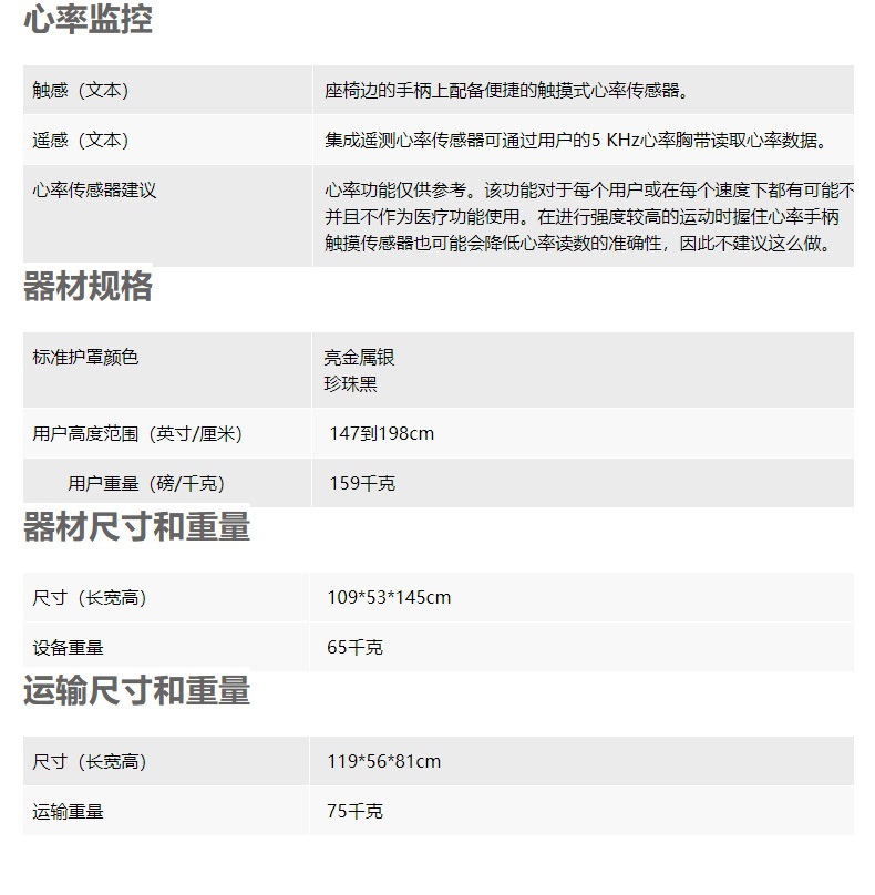 品牌: Precor/必确 产品类别: 直立式 货号: UBK635 阻力调节方式: 自发电健身车 功能: 距离,时间,速度,卡路里,心率,运动程式 适用范围: 办公室,家庭 最大承重: 159 型号: UBK635 规格(长*宽*高): 109*53*145cm 适用场景: 健身器材 重量: 0.5 kg/台
