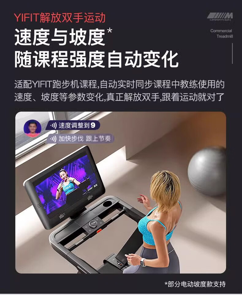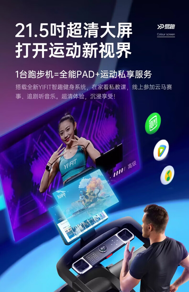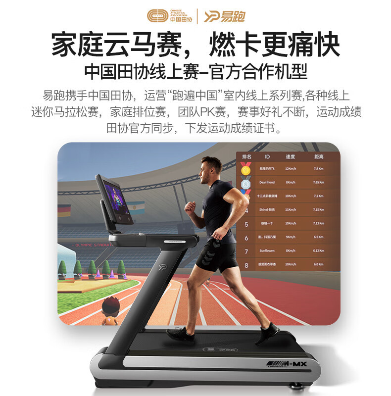 易跑MX电动跑步机室内健身房大屏宽跑带商用大型家用款跑步健身器 English | 投诉