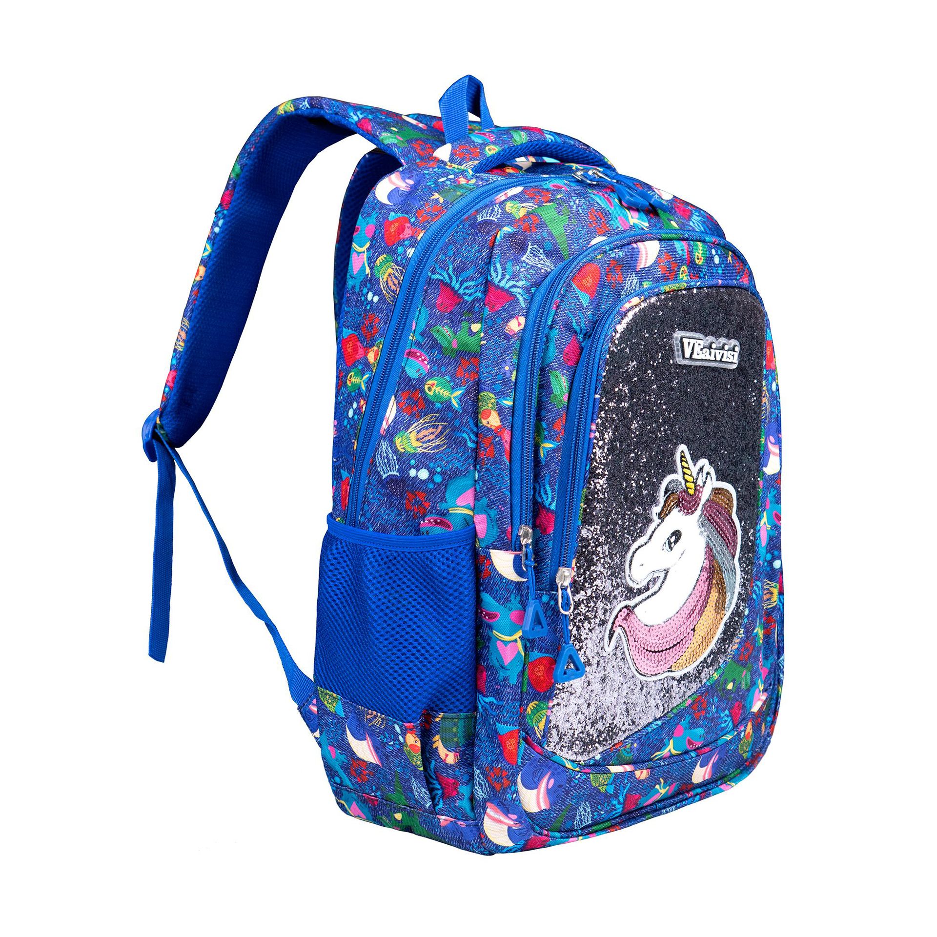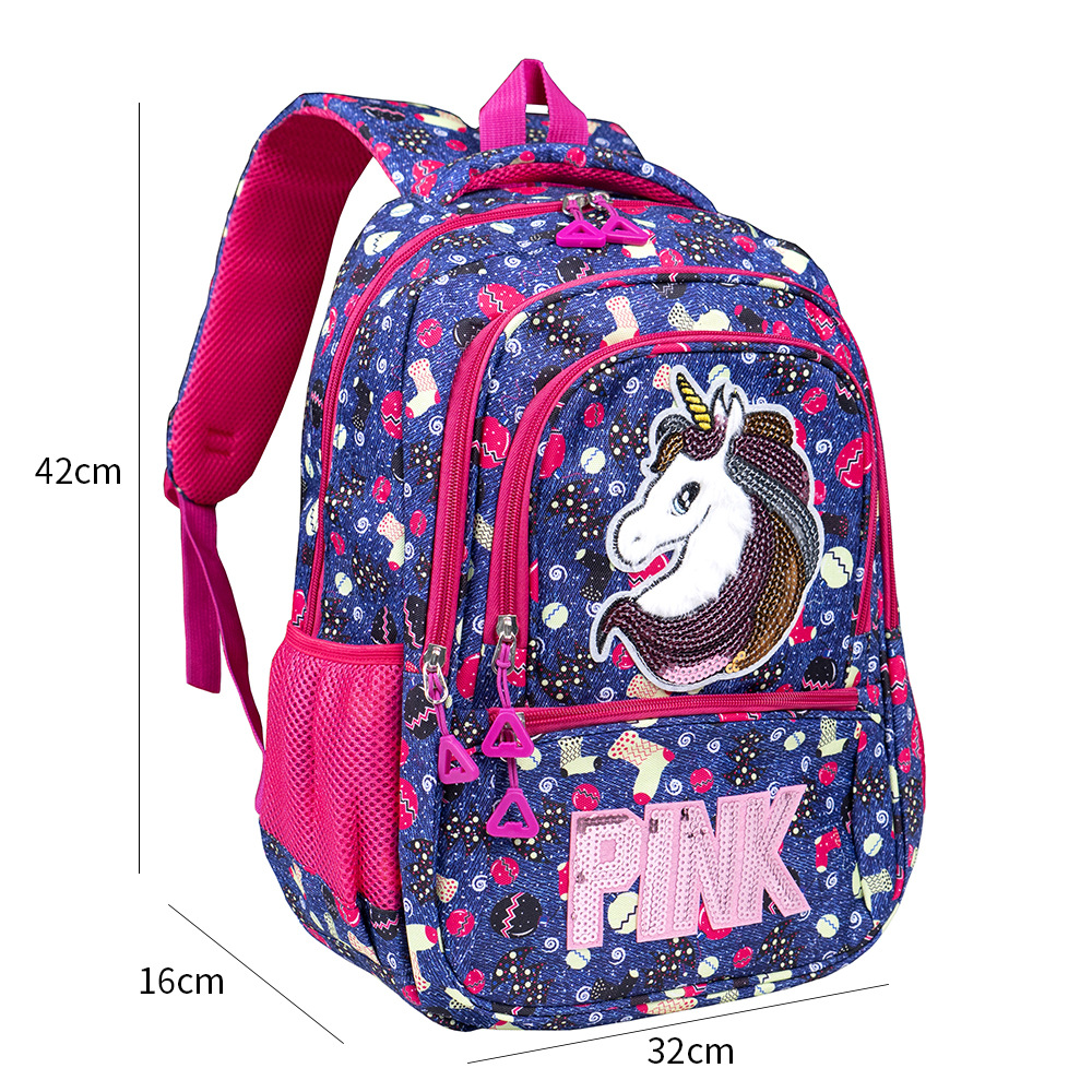 户外大容量双肩包轻便女生款休闲旅行背包潮流简约亮片独角兽书包 投诉